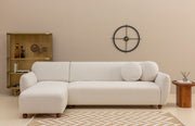 Com a sua cor branca sólida e pernas de madeira de nogueira, o nosso sofá de canto exala sofisticação e elegância. As almofadas fixas de assento e de costas, juntamente com as duas almofadas incluídas, dão um toque de luxo ao seu espaço de vida.