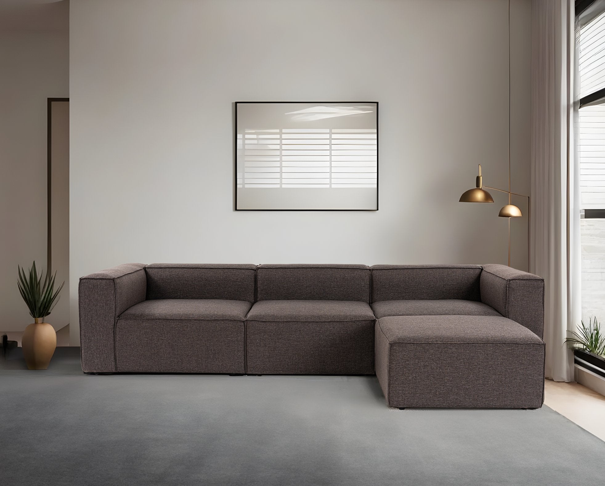 Com o seu design elegante e moderno, o nosso sofá de canto será certamente o ponto focal de qualquer divisão. A cor castanha escura acrescenta um toque de sofisticação e elegância, combinando sem esforço com qualquer decoração interior. O tecido 100% linho exala luxo e durabilidade, garantindo que este sofá permanecerá uma peça intemporal na sua casa durante muitos anos.