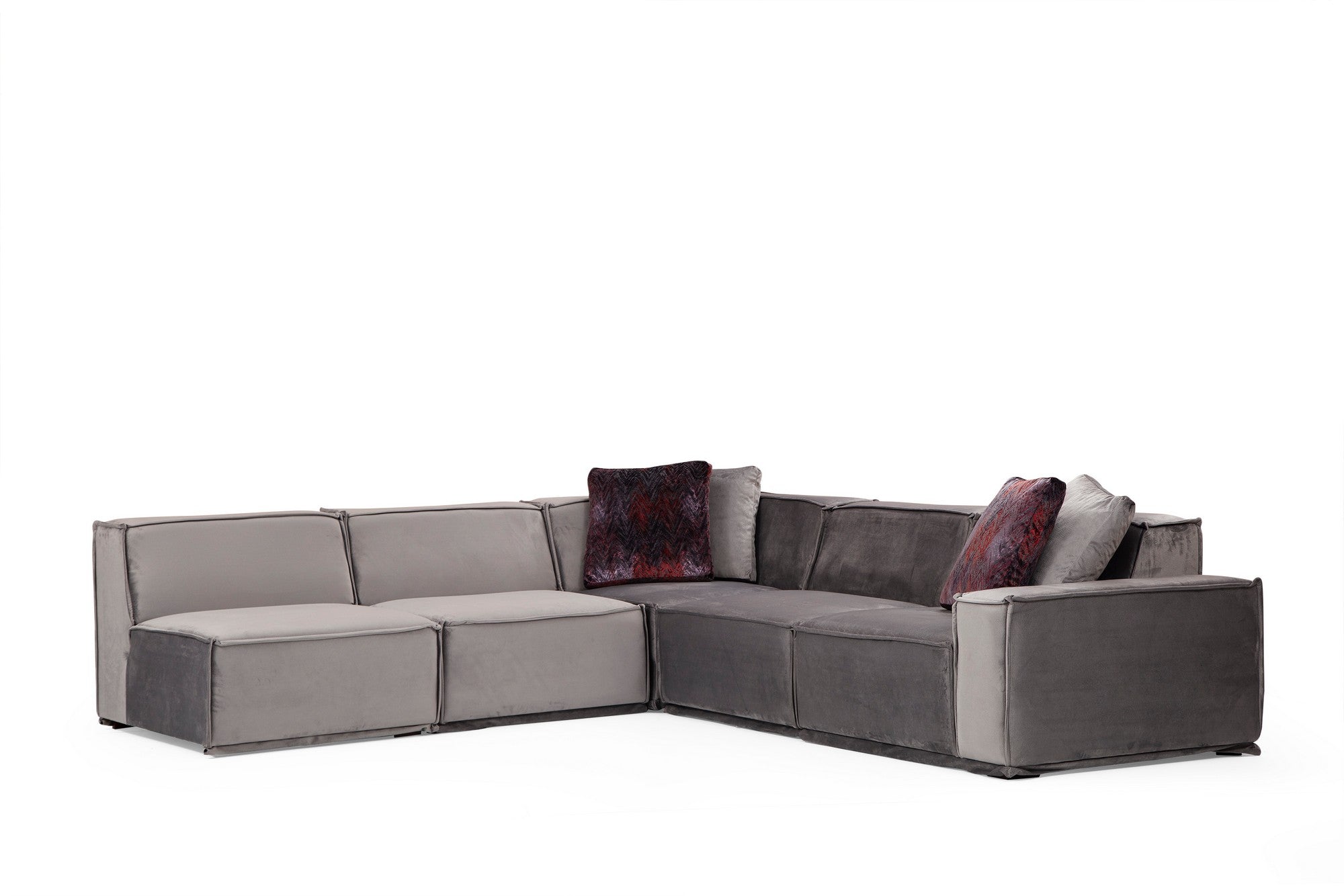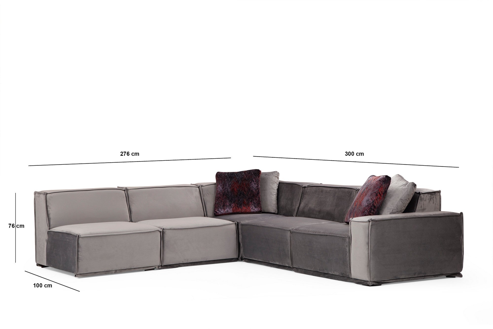 Sofá de Canto Elegante, Cinza, 276 x 300 cm | Estrutura em Madeira de Faia e Aglomerado, 100% Poliéster, 4 Almofadas Inclusas | Perfeito para Espaços Modernos