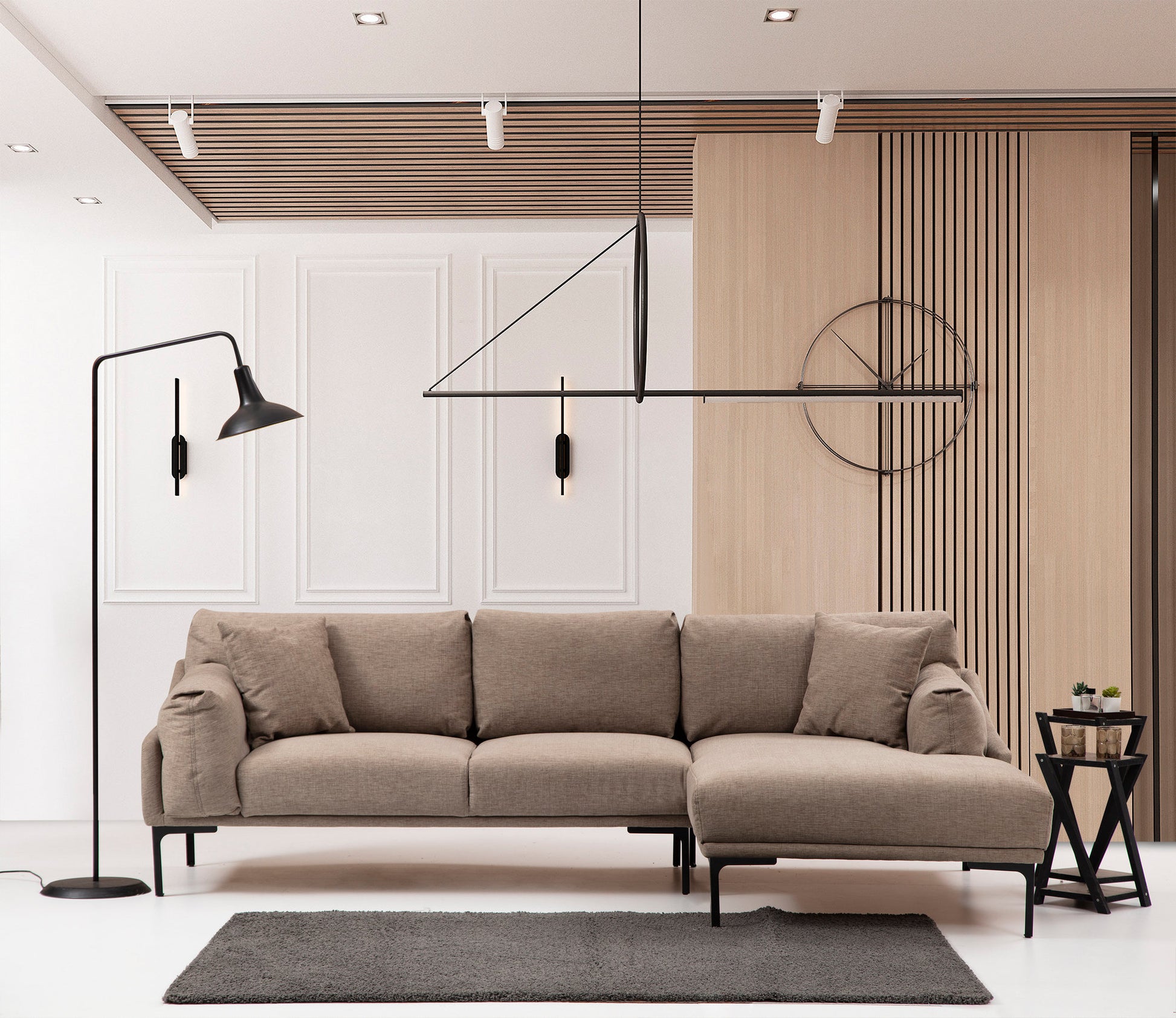 Com a sua cor moca e tonalidade castanha sólida, este sofá integra-se sem esforço em qualquer interior. Os elementos de design industrial e escandinavo fazem dele uma peça marcante que complementa vários estilos de decoração.