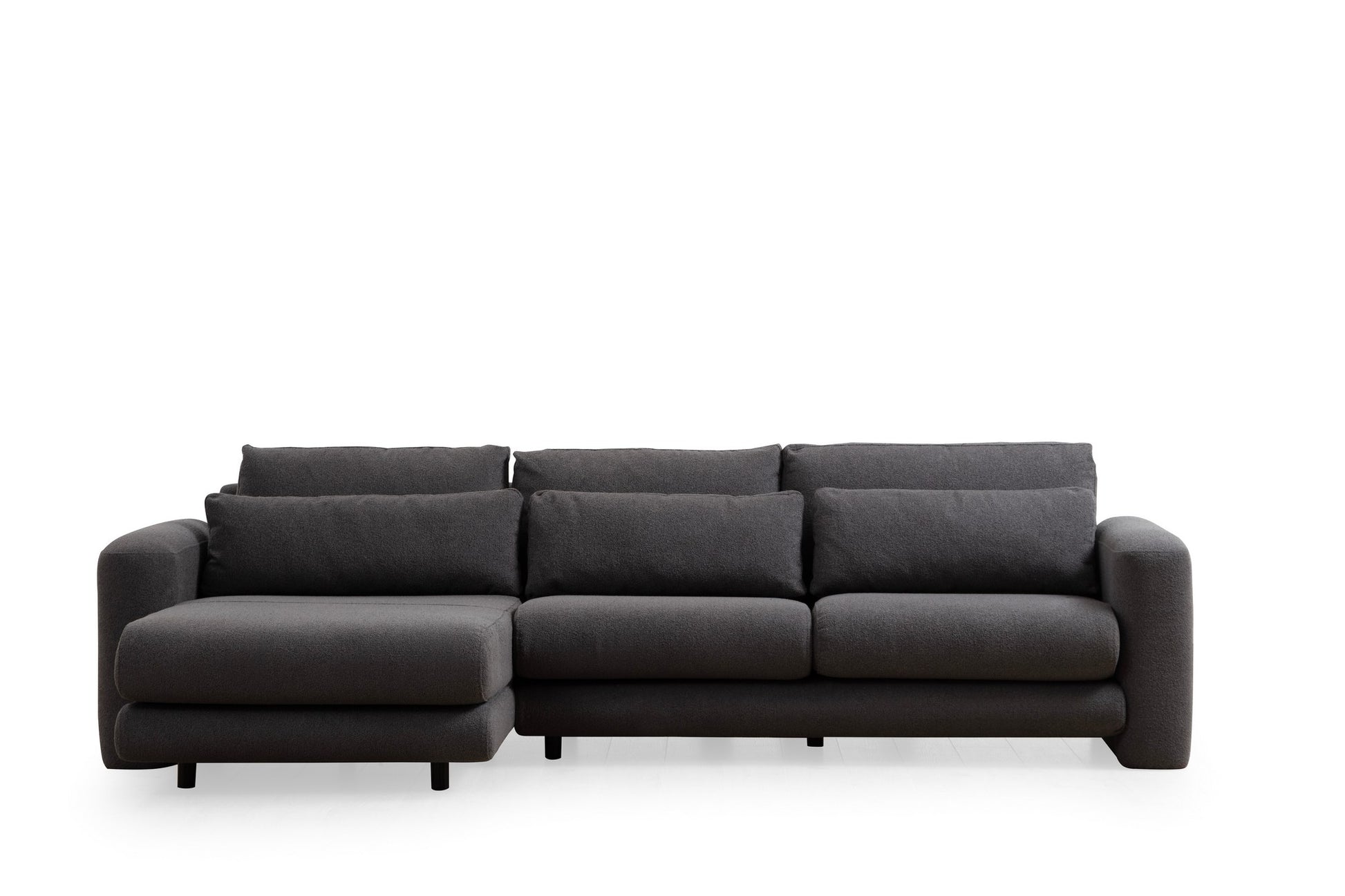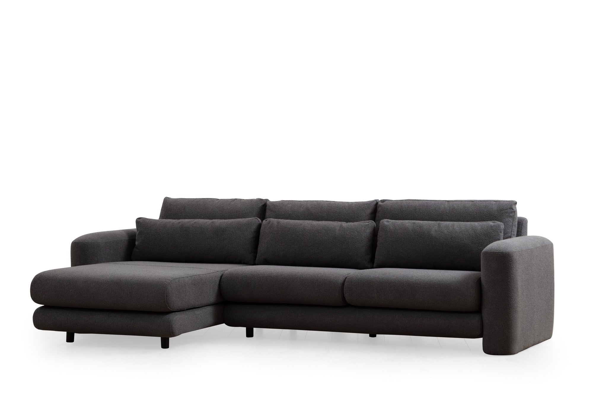 Com um design elegante e moderno, o nosso sofá de canto realça sem esforço o aspeto estético do seu espaço de vida. A cor cinzenta acrescenta um toque de sofisticação, tornando-o perfeito para qualquer estilo de decoração. A estrutura em madeira de faia e aglomerado de madeira garante durabilidade e longevidade, enquanto o tecido lavável a seco facilita a manutenção.