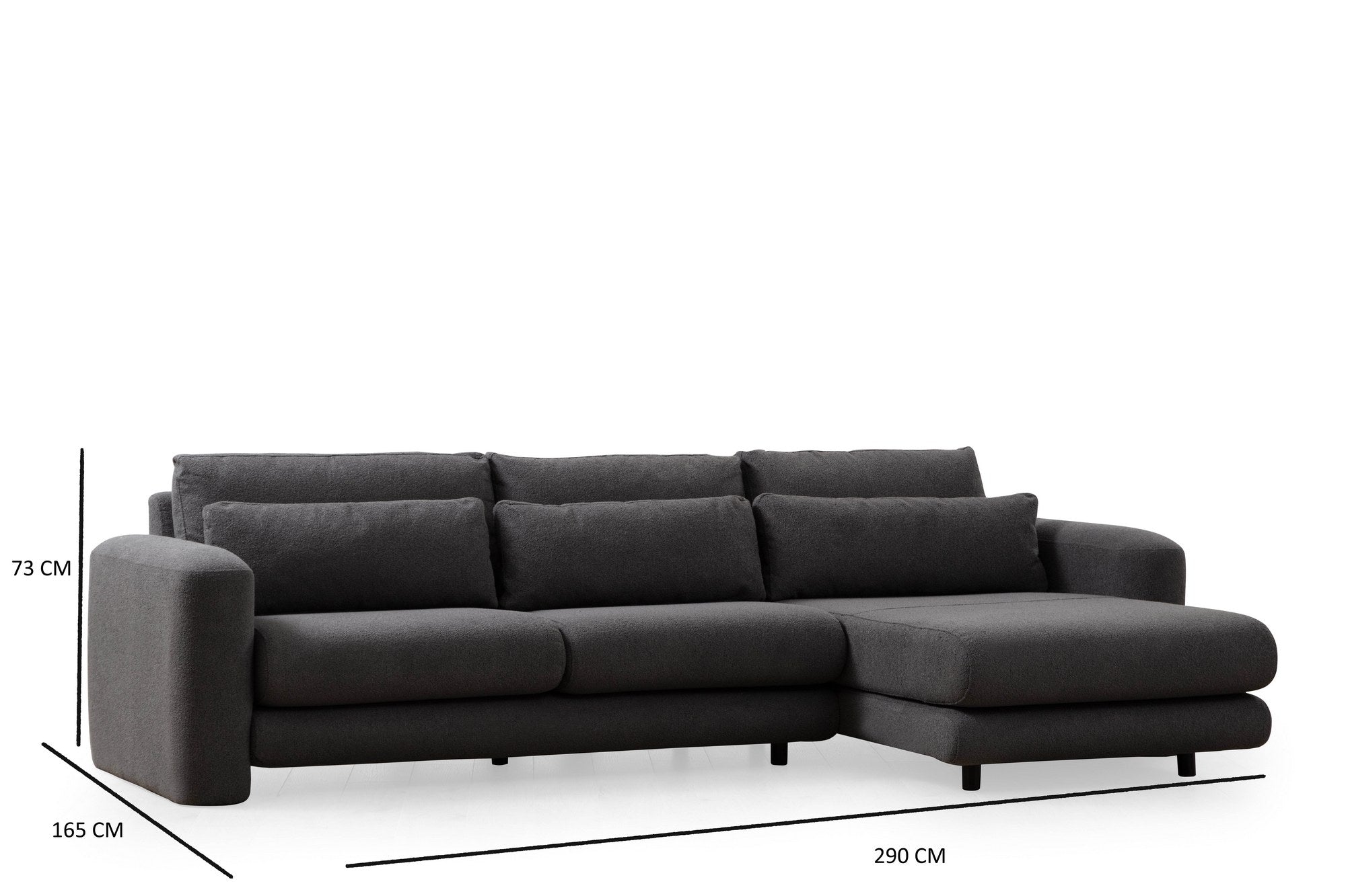 Sofá de canto elegante, cinza, 290 x 165 x 73 cm | Estrutura em madeira de faia e aglomerado, 100% poliéster, espuma 28 DNS | Almofadas portáteis, tecido lavável a seco