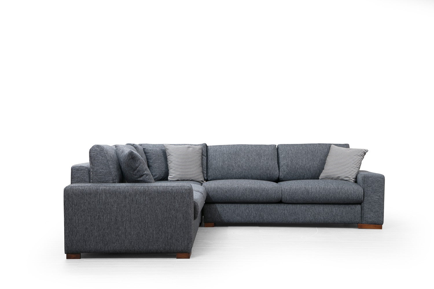 Com o seu design elegante e moderno, este sofá de canto complementa sem esforço qualquer decoração interior. A cor sólida antracite exala sofisticação, tornando-o perfeito para ambientes hoteleiros e de inspiração escandinava. As pernas de madeira de nogueira dão um toque de elegância à estética geral.