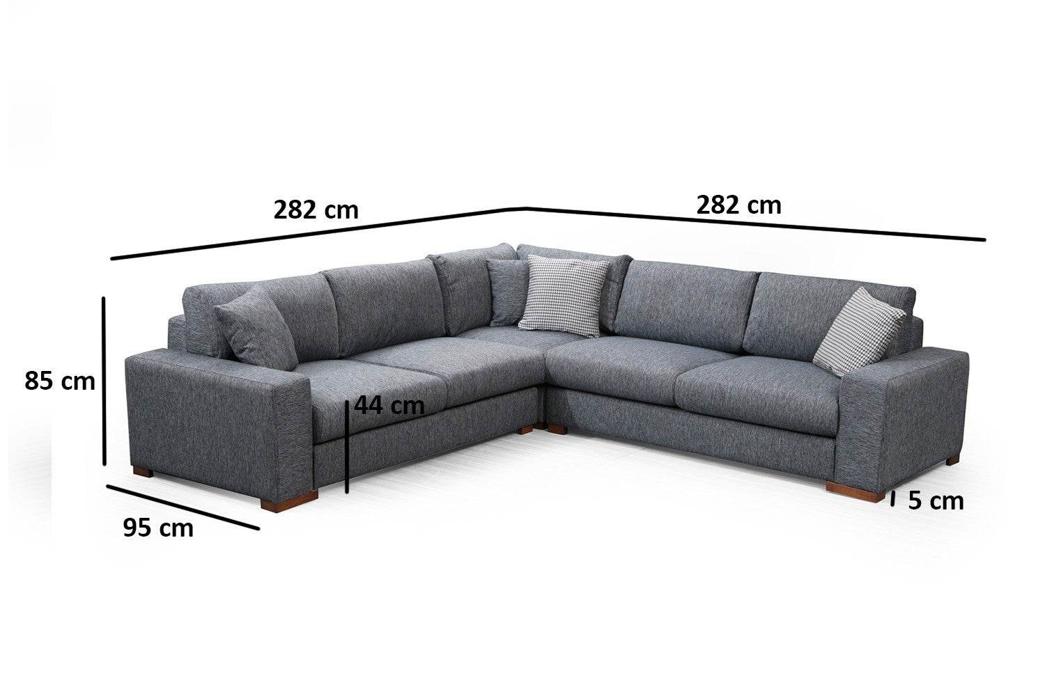 Sofá de canto elegante, antracite, 282 x 282 cm | Estrutura em madeira de faia e aglomerado, tecido 100% poliéster | Almofadas de espuma confortáveis, pernas de nogueira | Design escandinavo moderno