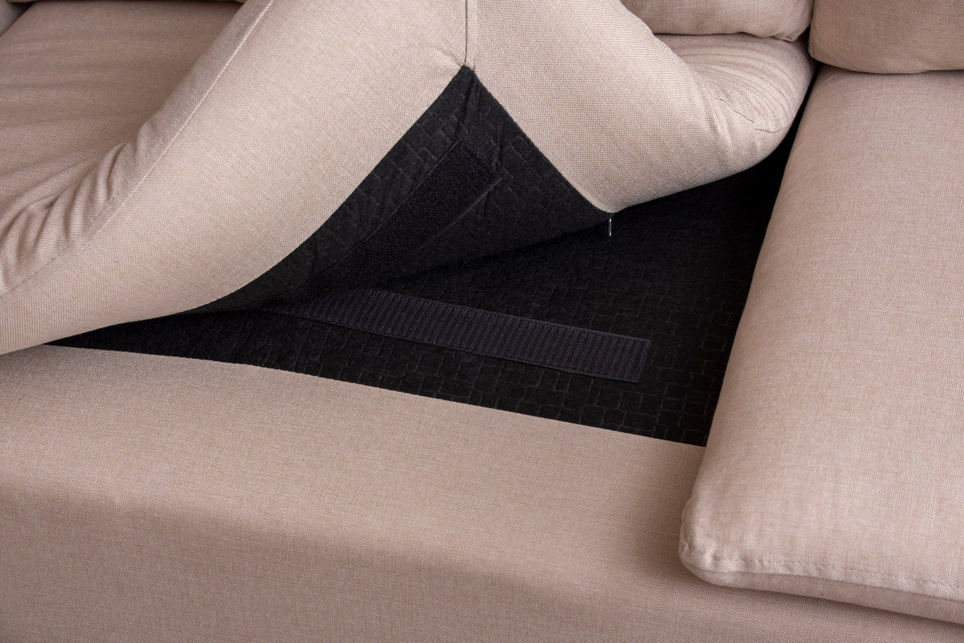 Com o seu design elegante e moderno, o nosso sofá de canto realça sem esforço o apelo estético de qualquer divisão. A cor creme acrescenta um toque de elegância e sofisticação, tornando-o uma adição intemporal à decoração da sua casa. A chaise lounge acrescenta um toque de versatilidade, permitindo-lhe relaxar em várias posições.