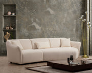 Sofá de canto elegante, cor creme, 288 x 108 x 79 cm | Estrutura em madeira de faia e aglomerado, 100% poliéster, espuma 28 DNS | Elegante e confortável para salas de estar modernas