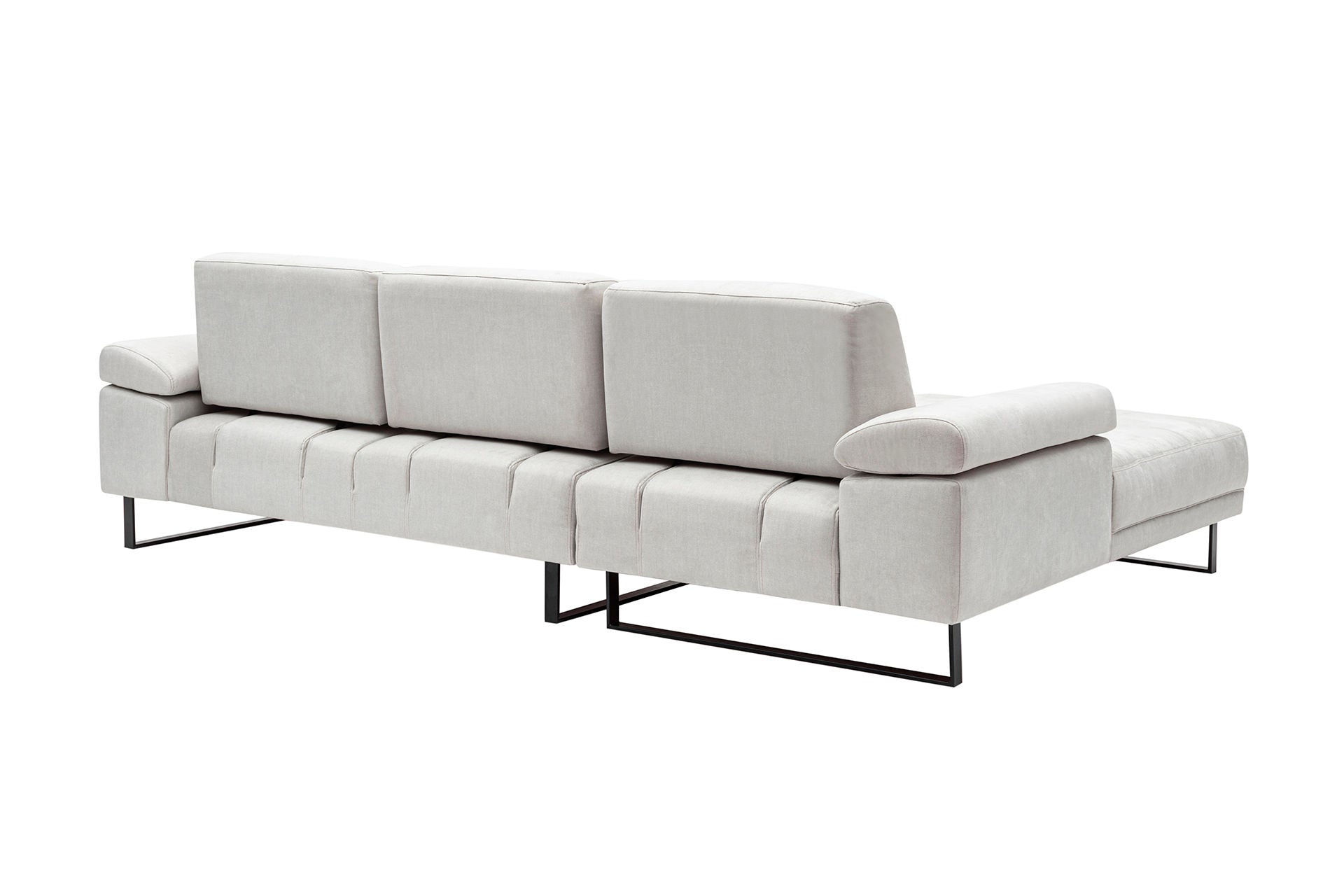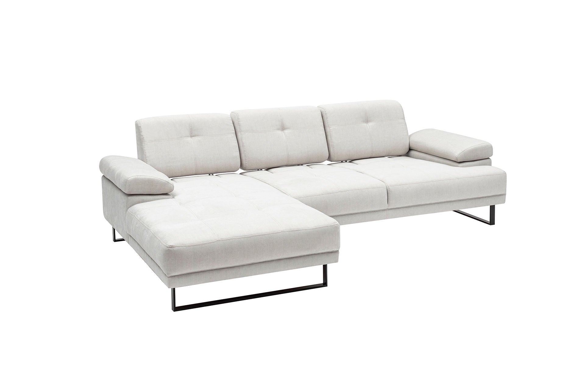 Sofá de canto bege com estrutura de madeira de faia, 174 x 314 cm | 100% poliéster, braço ajustável, encosto móvel, pernas de metal preto fosco | Elegante e funcional para uma vida moderna
