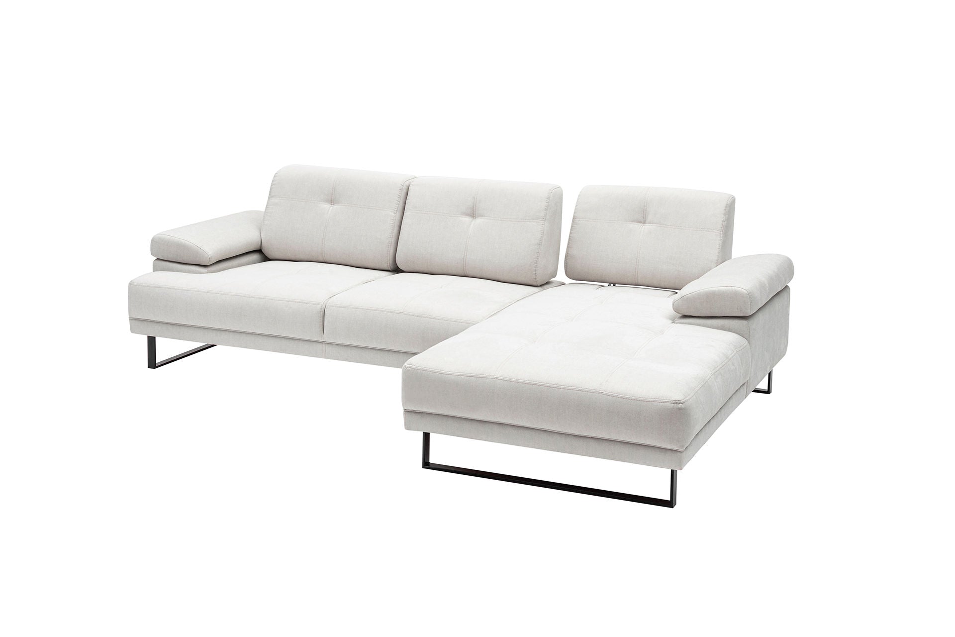 Sofá de canto elegante, bege, 274 x 174 x 83 cm | Estrutura em madeira de faia e aglomerado, 100% poliéster, braço ajustável, encosto móvel | Design industrial moderno