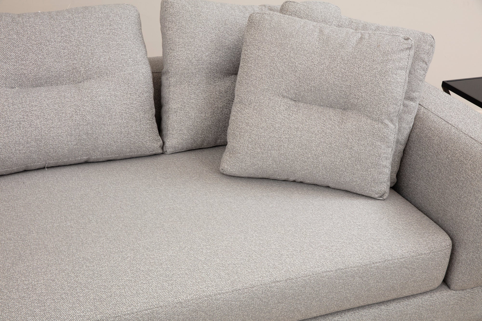 Com uma bonita cor cinzenta clara, este sofá combina facilmente com qualquer estilo de decoração. As almofadas portáteis para as costas e para o assento permitem-lhe personalizar a sua experiência de assento, enquanto as pernas em metal preto dão um toque de elegância moderna.