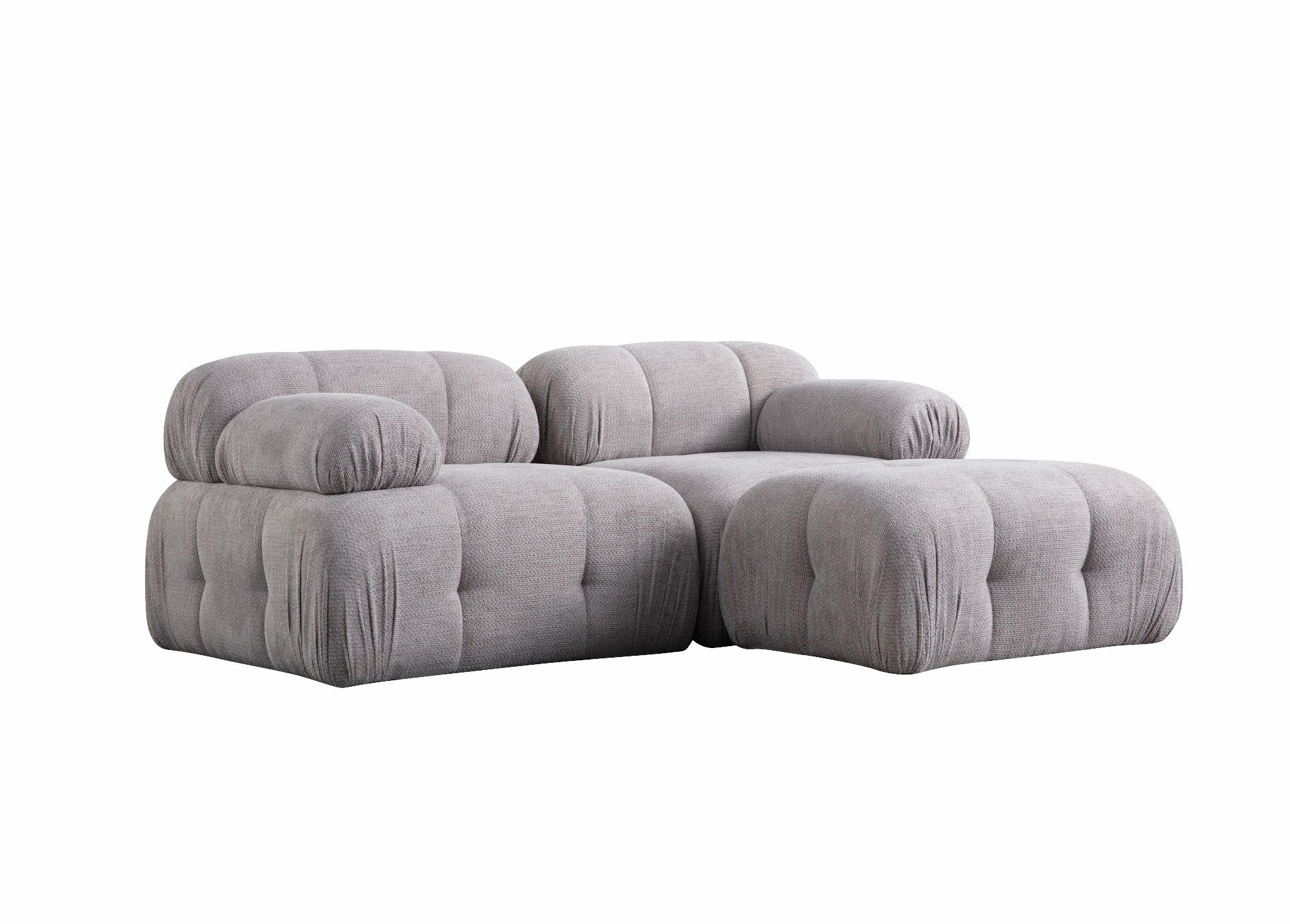 Sofá de canto – 190 x 160 cm – Cinza claro – Madeira de faia e aglomerado
