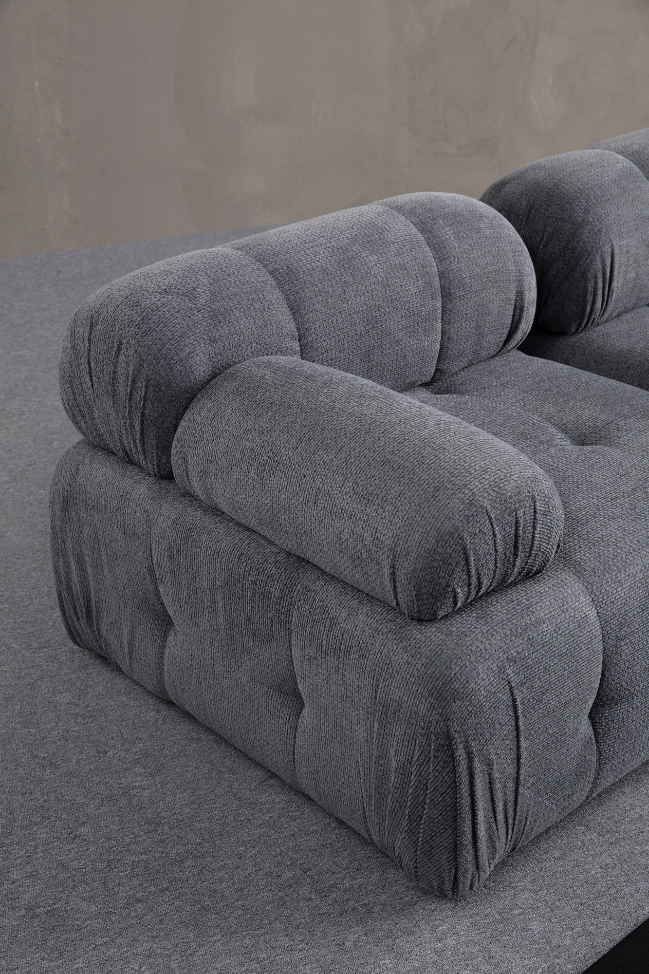 A altura do assento de 42 cm e a profundidade do assento de 62 cm proporcionam o equilíbrio perfeito entre apoio e descontração. A largura do apoio de braços de 30 cm e a altura do apoio de braços de 62 cm oferecem um conforto adicional, permitindo-lhe recostar-se e descontrair com estilo. A cor cinzenta do sofá dá um toque de sofisticação ao seu espaço, tornando-o uma peça versátil que complementa qualquer decoração.
