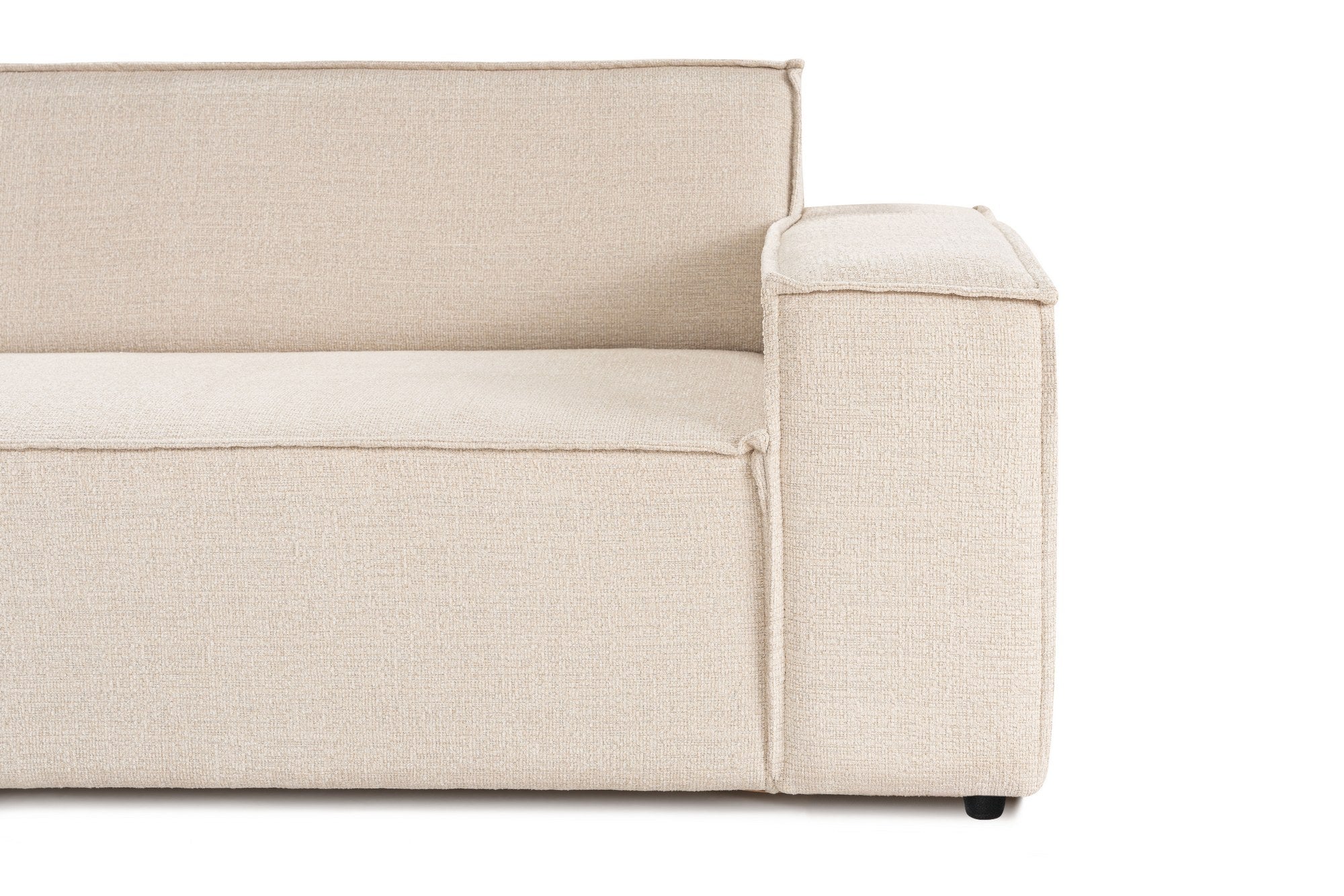 Com um design elegante e moderno, o nosso sofá de canto dá um toque de sofisticação a qualquer divisão. O tecido 100% poliéster numa bonita cor bege complementa qualquer decoração, enquanto as pernas de madeira pintadas de preto dão um toque de elegância. As almofadas de assento e de encosto fixas garantem que o sofá mantém a sua forma e estrutura, mesmo após anos de utilização.
