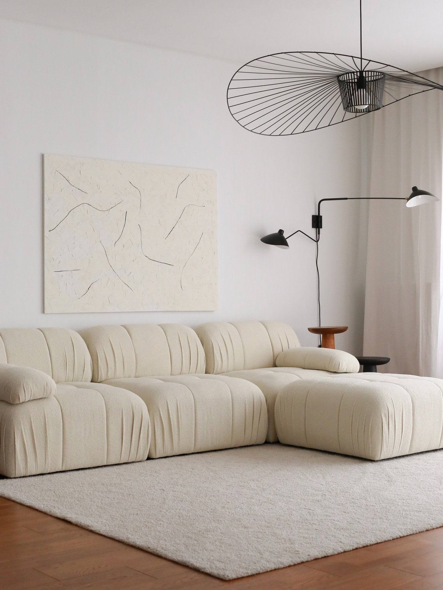 Melhore o aspeto estético da sua sala de estar com o design elegante e contemporâneo do nosso sofá de canto. As suas linhas simples e silhueta minimalista exalam sofisticação, enquanto a cor branca acrescenta um toque de elegância a qualquer decoração. A estrutura 100% em viga de chifre garante durabilidade e estabilidade, tornando-o um investimento duradouro para a sua casa.