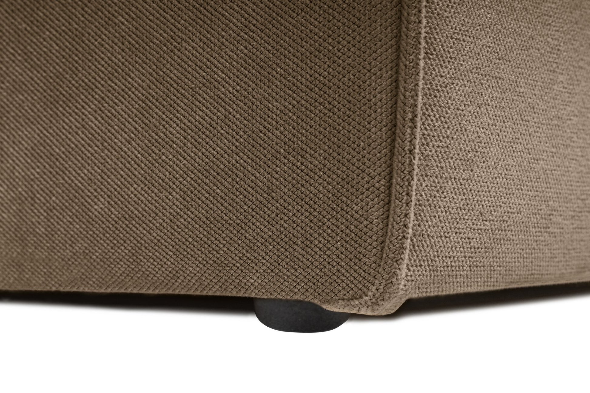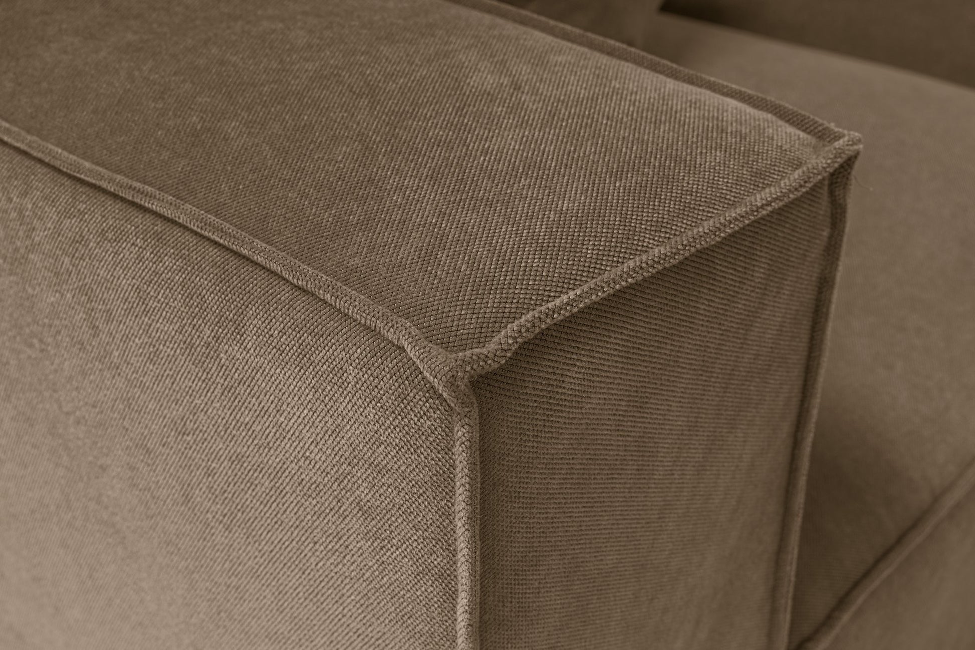 Sofá de canto elegante, marrom, 350 x 190 x 65 cm | Estrutura 100% madeira de carpa, tecido 100% linho, assentos de espuma 32 DNS, inclui pufe | Perfeito para salas de estar modernas