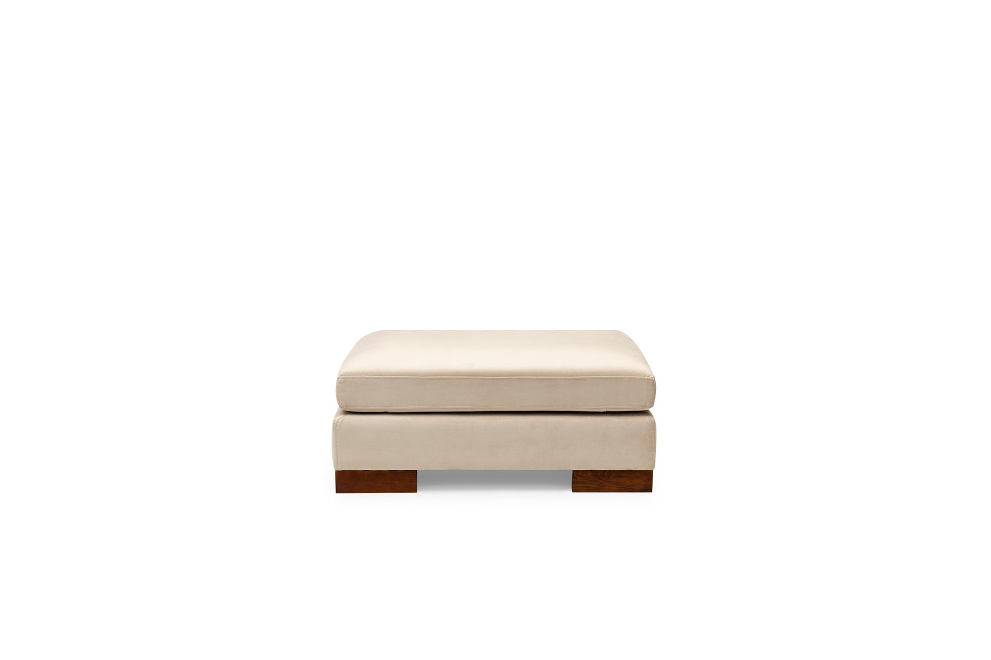 Sofá de canto elegante com pufe, bege, 193 x 313 cm | Estrutura em madeira de faia, 100% poliéster, almofadas de espuma macia, pernas de nogueira | Perfeito para decoração escandinava e hoteleira