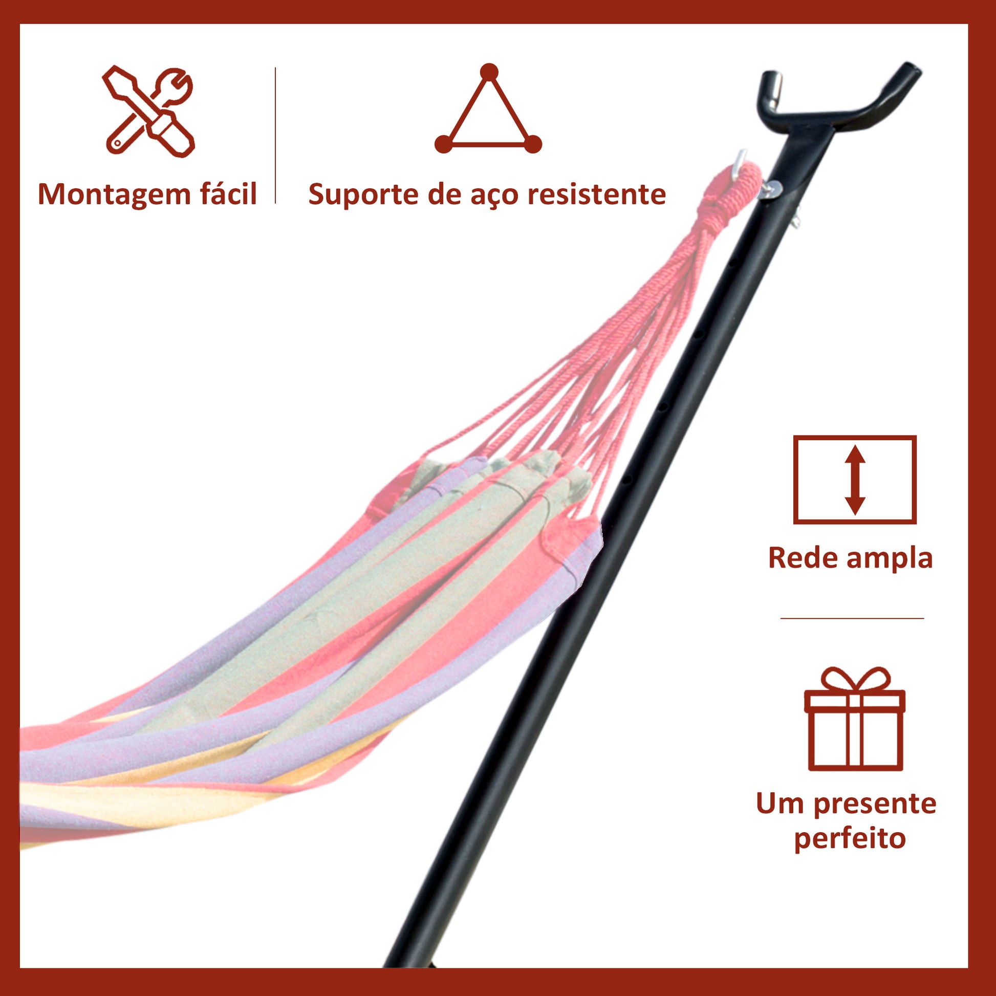 O suporte para cama de rede é uma solução prática para desfrutar de momentos de descanso e lazer em qualquer ambiente. Aproveite a facilidade de montagem e a versatilidade deste suporte para criar o seu próprio oasis de relaxamento.