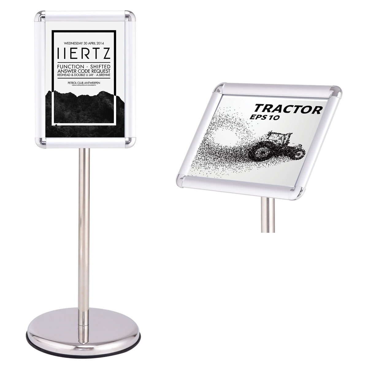 - Design fácil de usar - Cartaz em pé é livremente giratório para orientação vertical ou horizontal. O suporte de exibição é giratório a 360 graus. A folha transparente protege os seus anúncios do pó e sujidade.