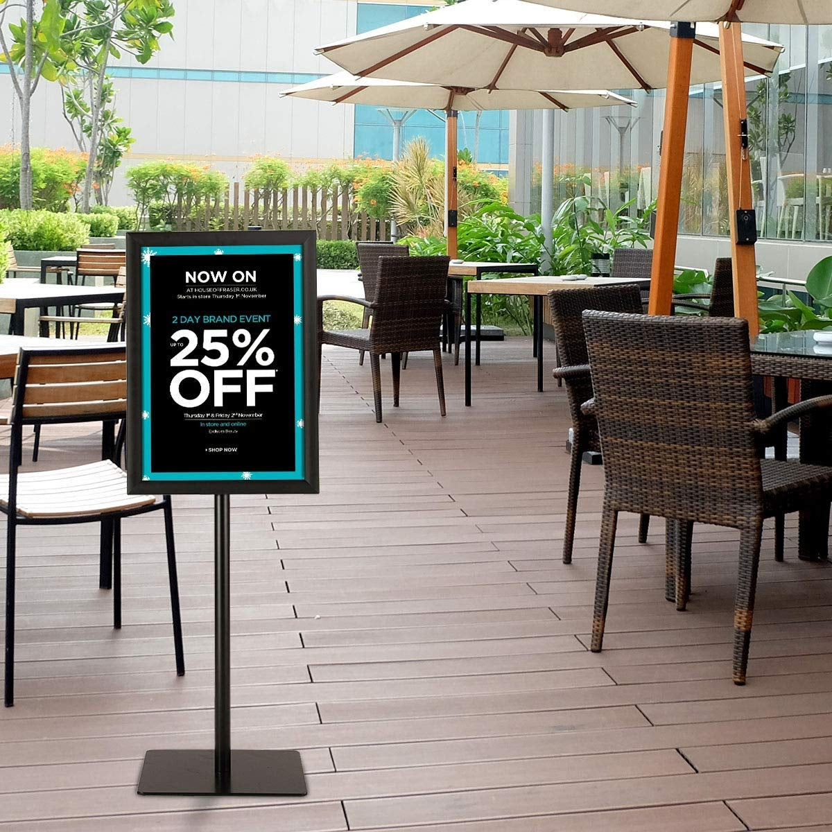 - Resistente - O quadro do poster do suporte de informação é feito de alumínio, o suporte é feito de aço inoxidável, sendo anticorrosivo e de longa vida útil.