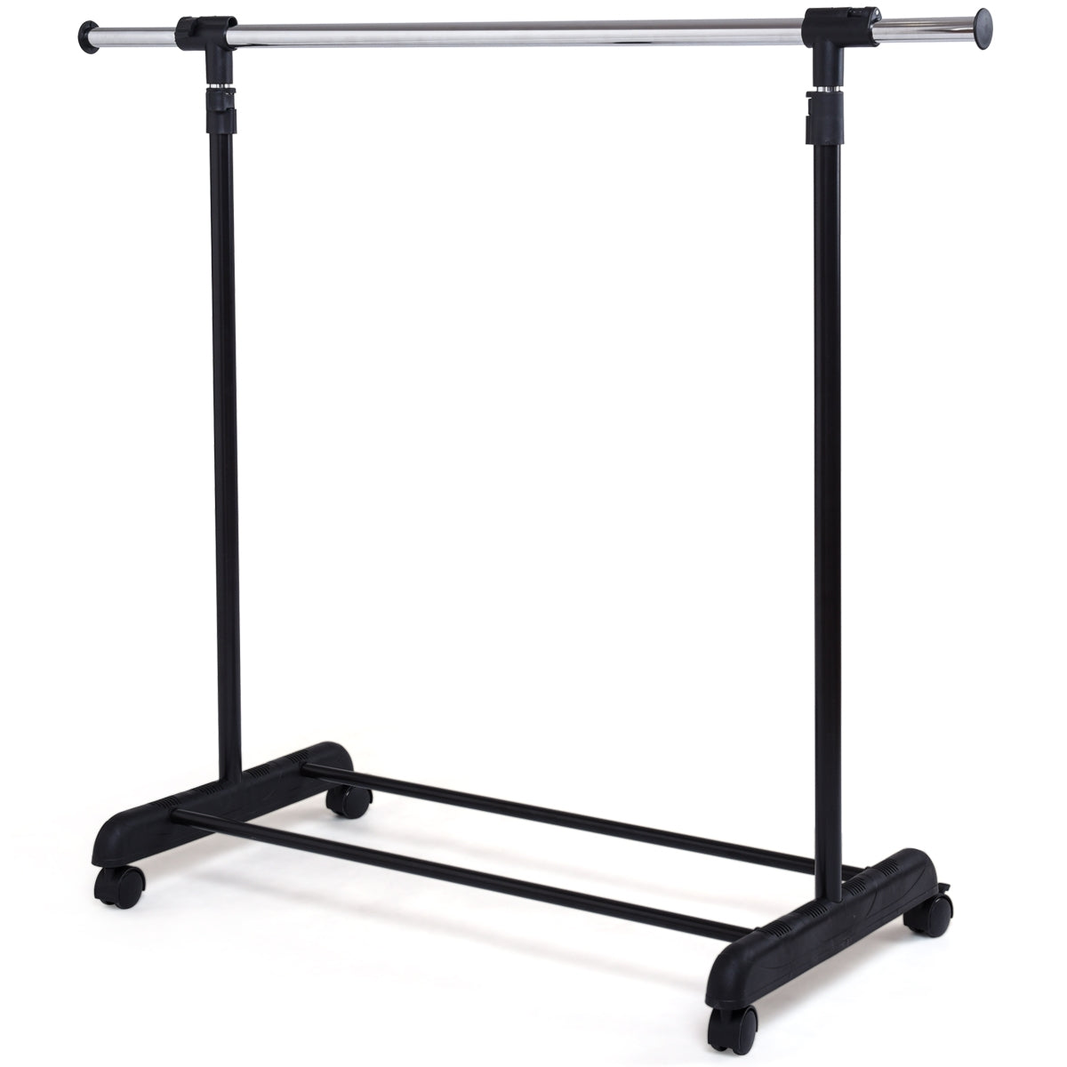 Organize a sua roupa com este suporte de roupa ajustável. Com um design simples e moderno, adapta-se a qualquer estilo de quarto. A altura e comprimento principal são ajustáveis, permitindo configurá-lo de acordo com o espaço disponível e a quantidade de roupa. As 4 rodas movem-se suavemente mesmo com carga pesada, sendo que 2 delas possuem travões para fácil paragem. Feito com tubos de aço resistente, suporta cargas pesadas sem problemas. Ideal para o quarto, sala de estar, sala de club ou escritório.