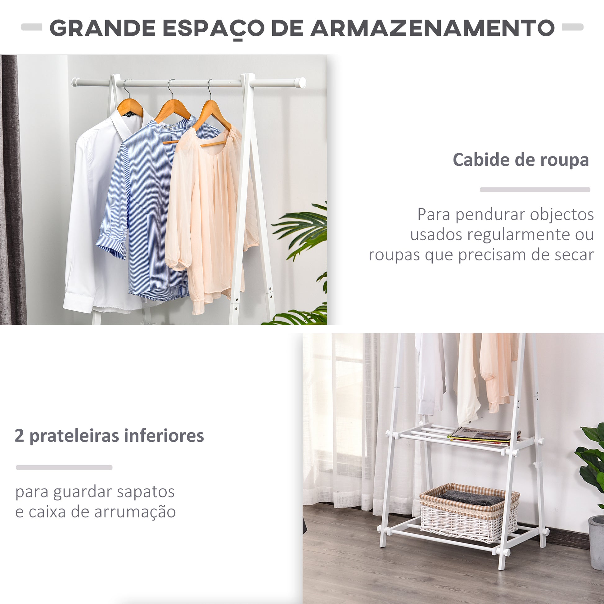 Suporte para Cabide Dobrável com 2 Prateleiras 107,5x45x150 cm Branco