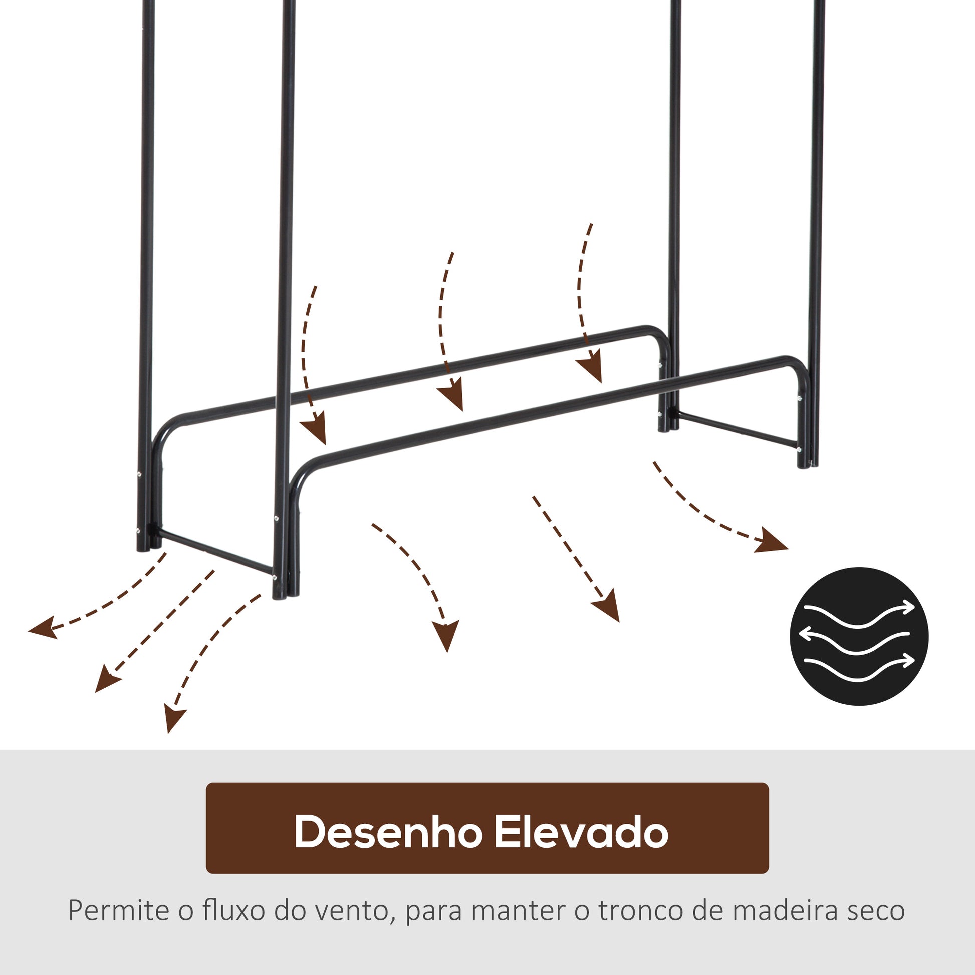- Benefícios: Desenho elevado para manter a lenha seca, amplo espaço de armazenamento, suporte até 150 kg.