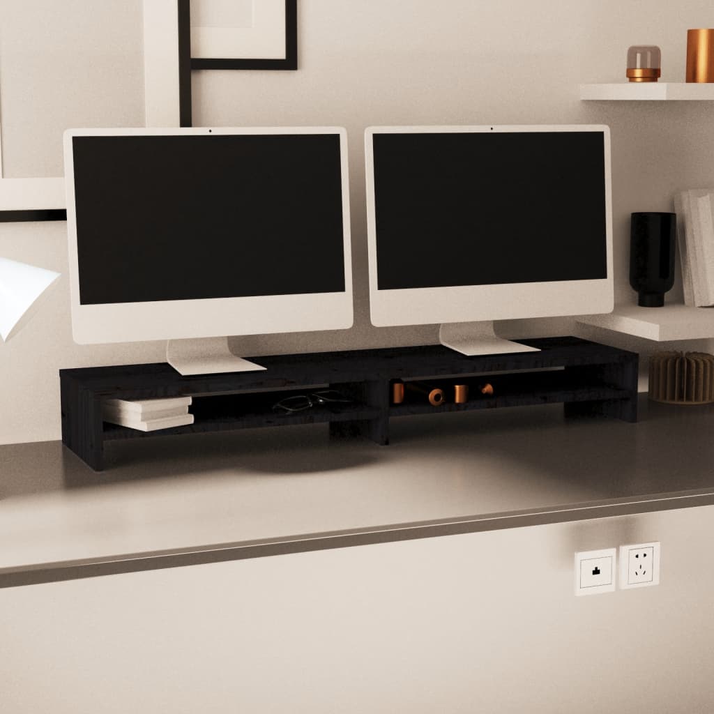 Agora, pode elevar os seus monitores com este suporte para monitor. O design elegante torna-o um complemento decorativo e prático para a sua área de trabalho.