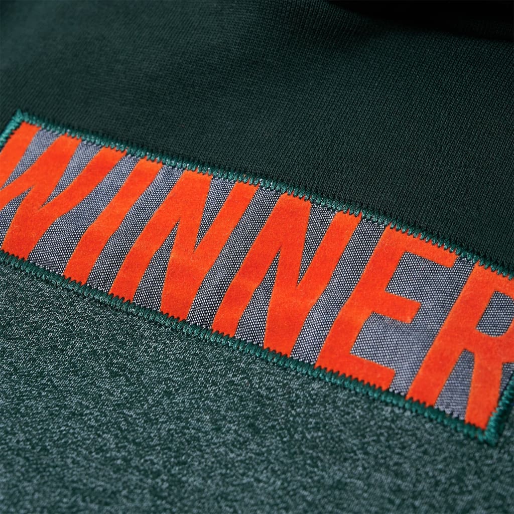Esta sweatshirt com capuz para criança possui mangas compridas e punhos e bainha canelados. Esta sweatshirt verde-escuro apresenta um logótipo com a palavra Winner e é feita de 92% algodão e 8% poliéster tratados com silicone e enzimas para um toque macio e confortável.