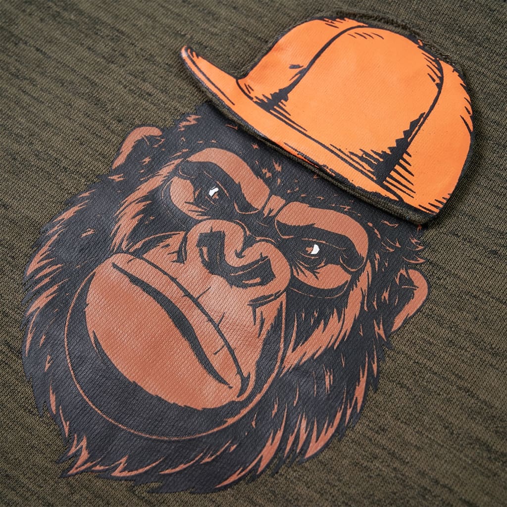 Esta sweatshirt para criança possui mangas compridas, um decote redondo e punhos, decote e parte inferior canelados. A sweatshirt para criança apresenta um gorila com boné. A camisola de criança é feita de um material macio que inclui 80% algodão e 20% poliéster para conforto e respirabilidade. O forro de velo macio proporciona calor adicional.