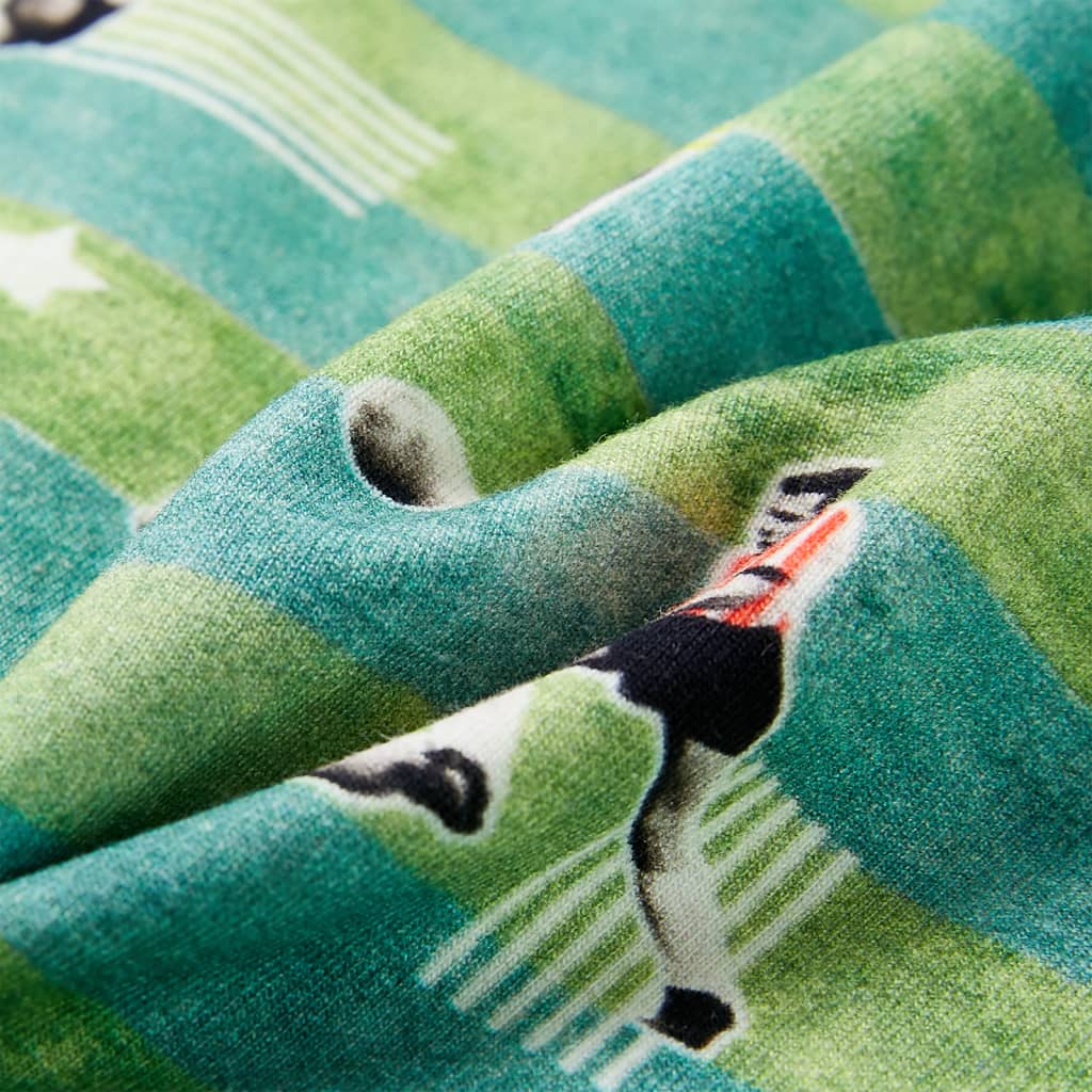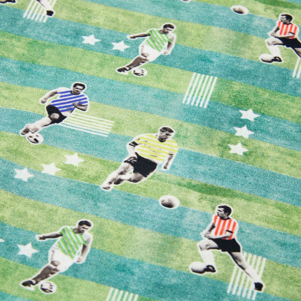 Esta sweatshirt para criança possui mangas compridas, um decote redondo e punhos, decote e parte inferior canelados. A camisola infantil é feita de 95% algodão e 5% elastano, proporcionando conforto e respirabilidade. O forro em velo suave fornece um aconchego adicional. A sweatshirt de criança apresenta jogadores de futebol a pontapear a bola por todo o lado.