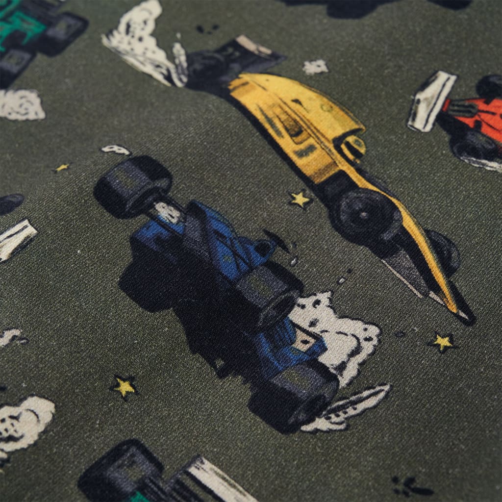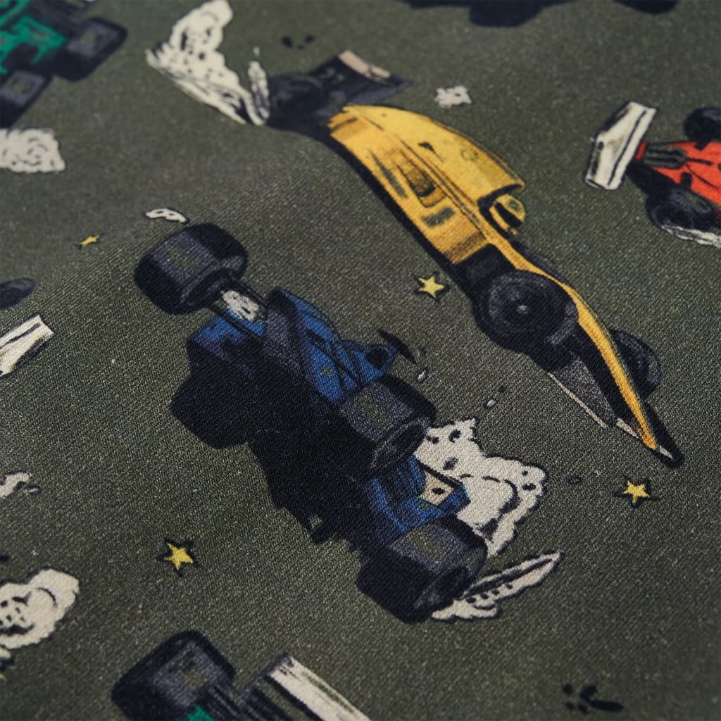 Esta sweatshirt para criança possui mangas compridas, um decote redondo e punhos, decote e parte inferior canelados. A sweatshirt para criança apresenta estampas de carros de corrida por toda a parte. A sweatshirt para criança é feita de 95% algodão e 5% elastano para conforto e respirabilidade.