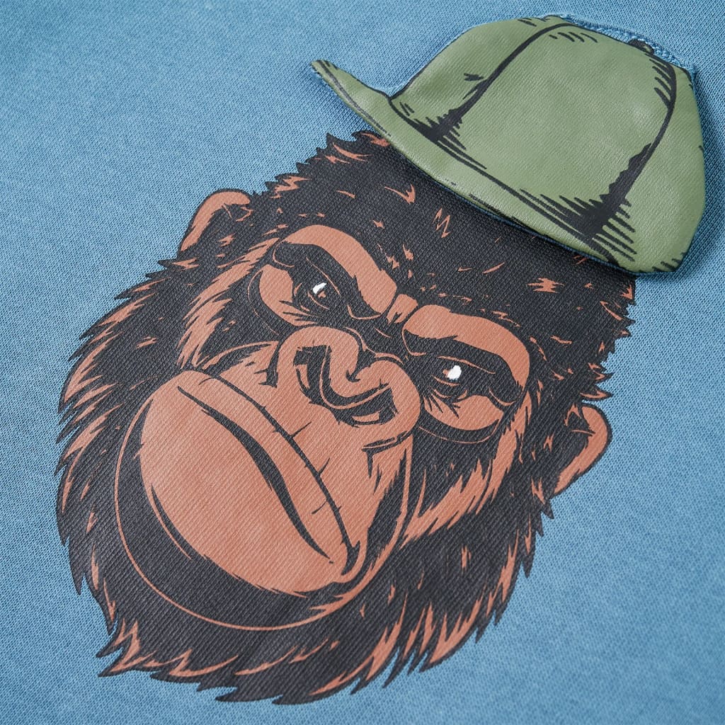 Esta sweatshirt para criança possui mangas compridas, um decote redondo e punhos, decote e parte inferior canelados. A sweatshirt para criança apresenta um gorila com boné. A camisola de criança é feita de um material macio que inclui 92% algodão e 8% poliéster para conforto e respirabilidade. O forro de velo macio proporciona calor adicional.