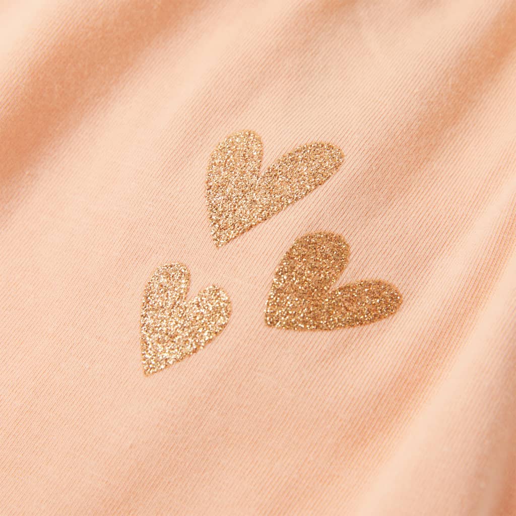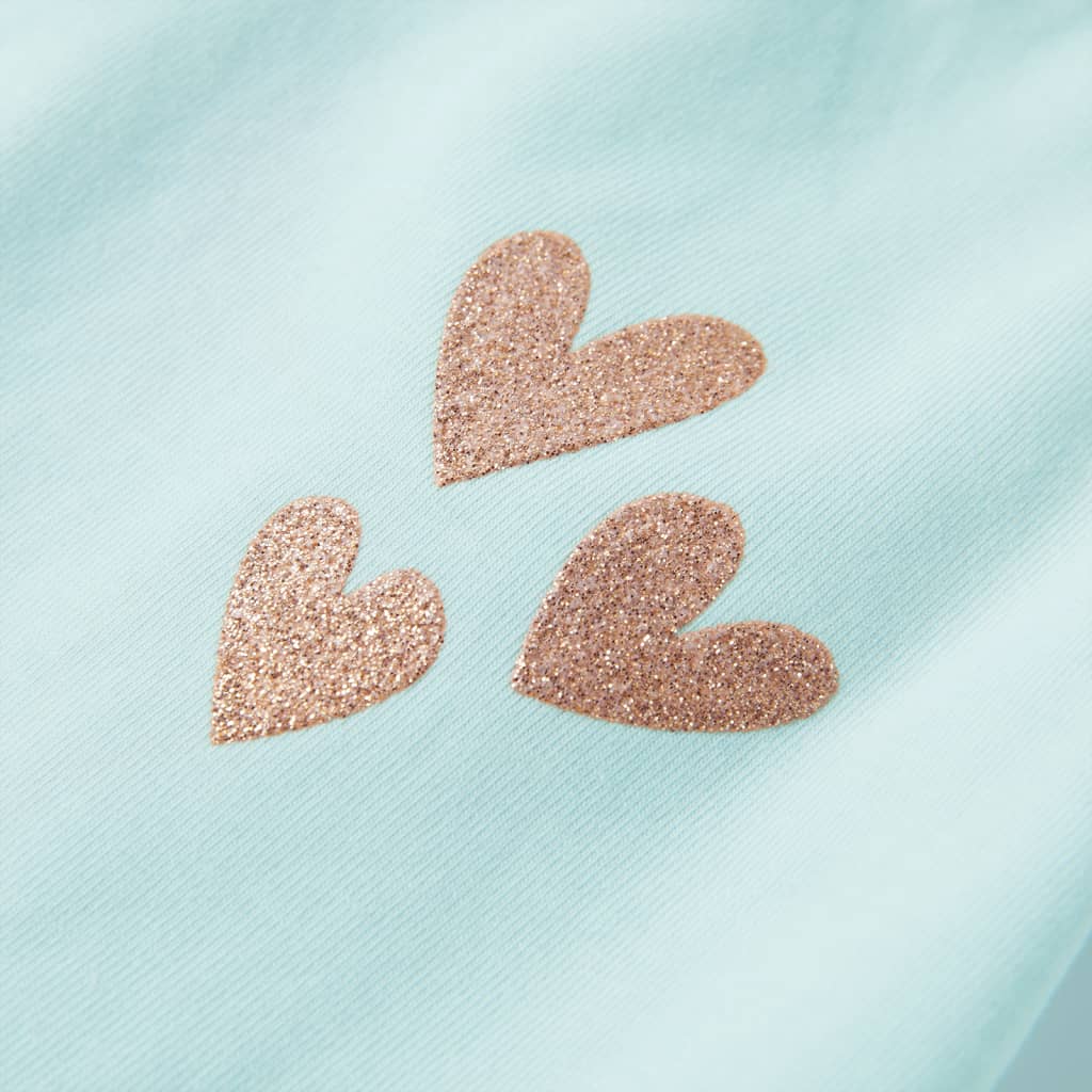 Esta t-shirt para criança possui alças elásticas e um corte a direito. Os corações brilhantes fazem dão à t-shirt de alças para criança um aspeto elegante e bonito. A t-shirt de alças é feita de 95% algodão e 5% elastano, proporcionando um toque suave e confortável.