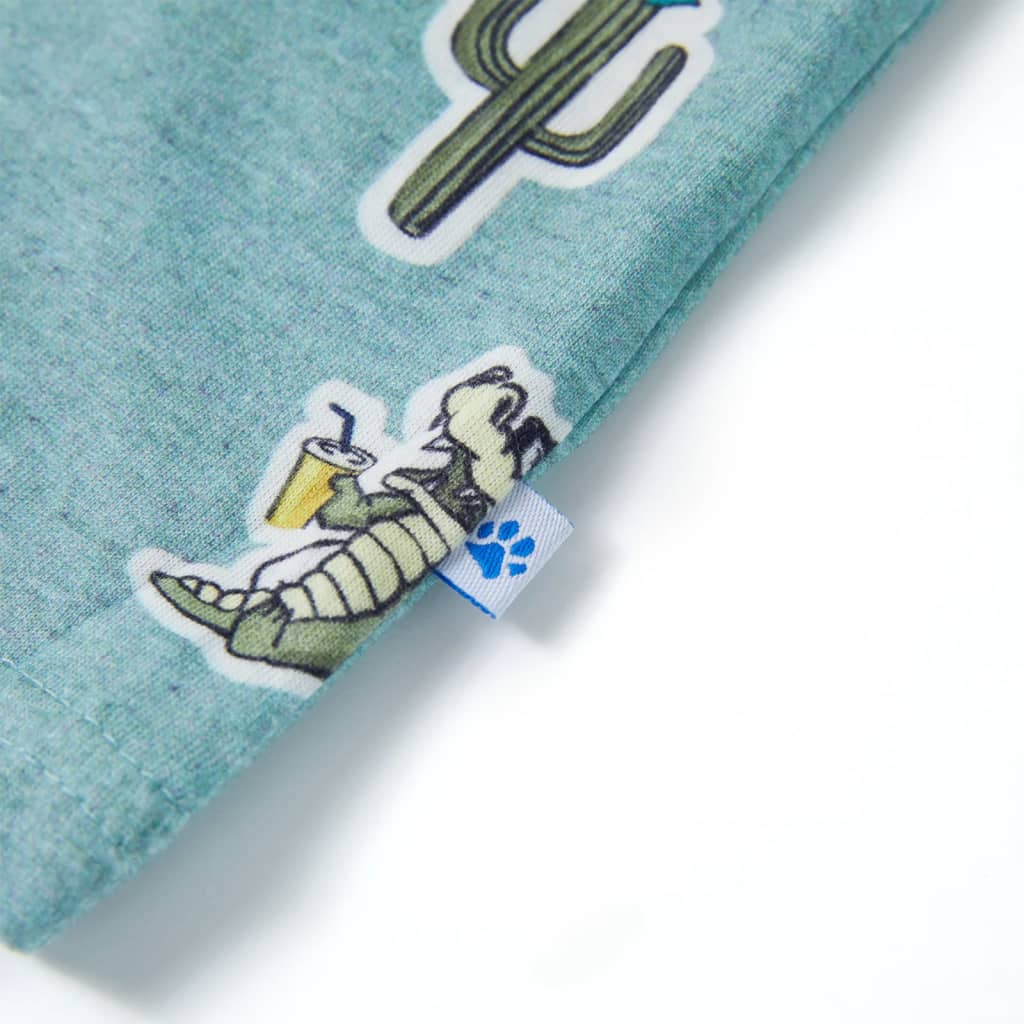 Esta t-shirt para criança possui mangas curtas, uma gola redonda e um corte a direito. Esta t-shirt apresenta uma estampa com desenhos de crocodilos, catos e batatas fritas por toda a parte. A t-shirt de manga curta para criança é fabricada em 100% algodão penteado tratado com silicone e enzimas, proporcionando um toque suave e confortável.