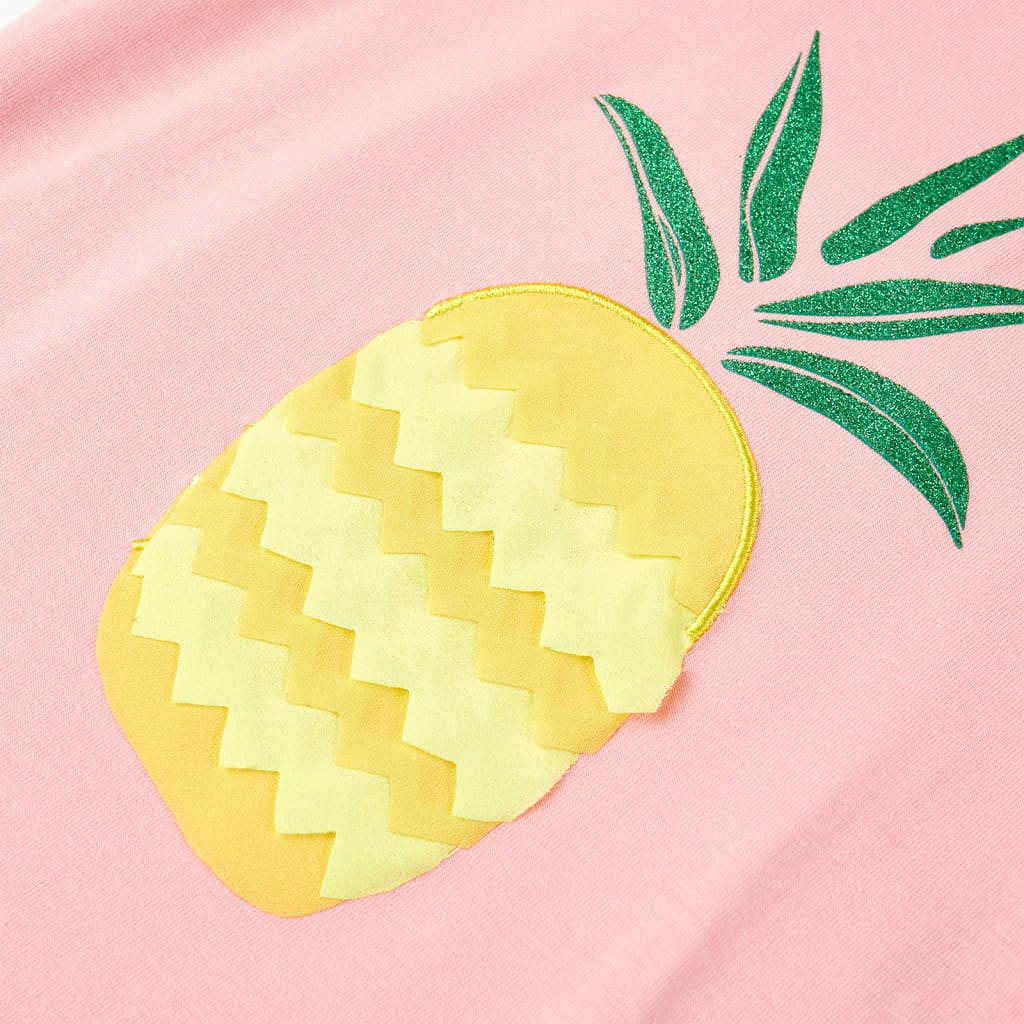 Esta t-shirt infantil sem mangas possui um decote redondo e um corte a direito. A t-shirt de criança apresenta um ananás na parte da frente e é feita de algodão e elastano, proporcionando um toque macio e confortável.