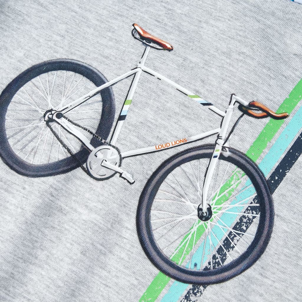 Esta t-shirt para criança possui mangas curtas, uma gola redonda e um modelo de corte reto. A t-shirt de criança apresenta uma bicicleta na parte da frente e é feita de 95% algodão e 5% viscose, proporcionando um toque macio e confortável.