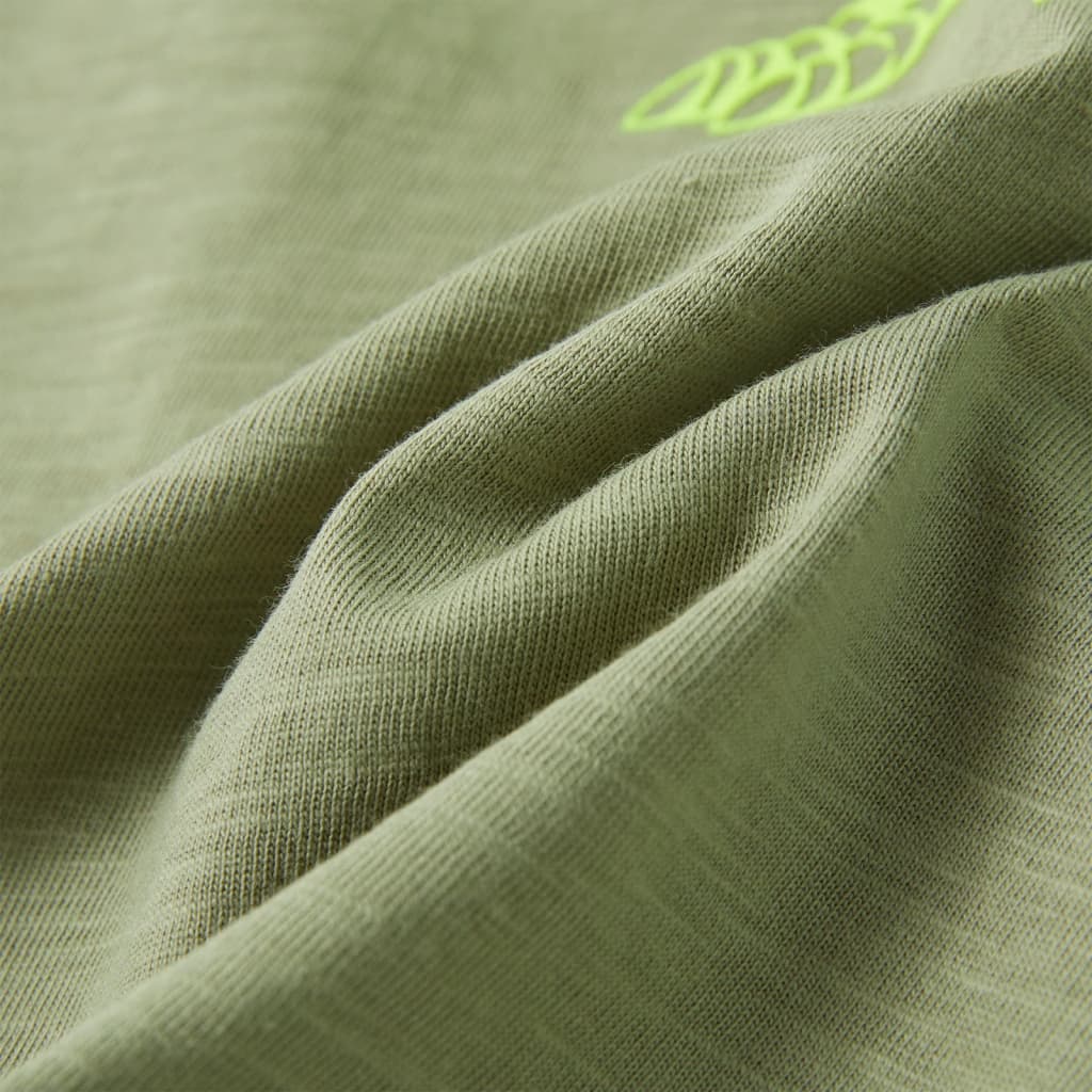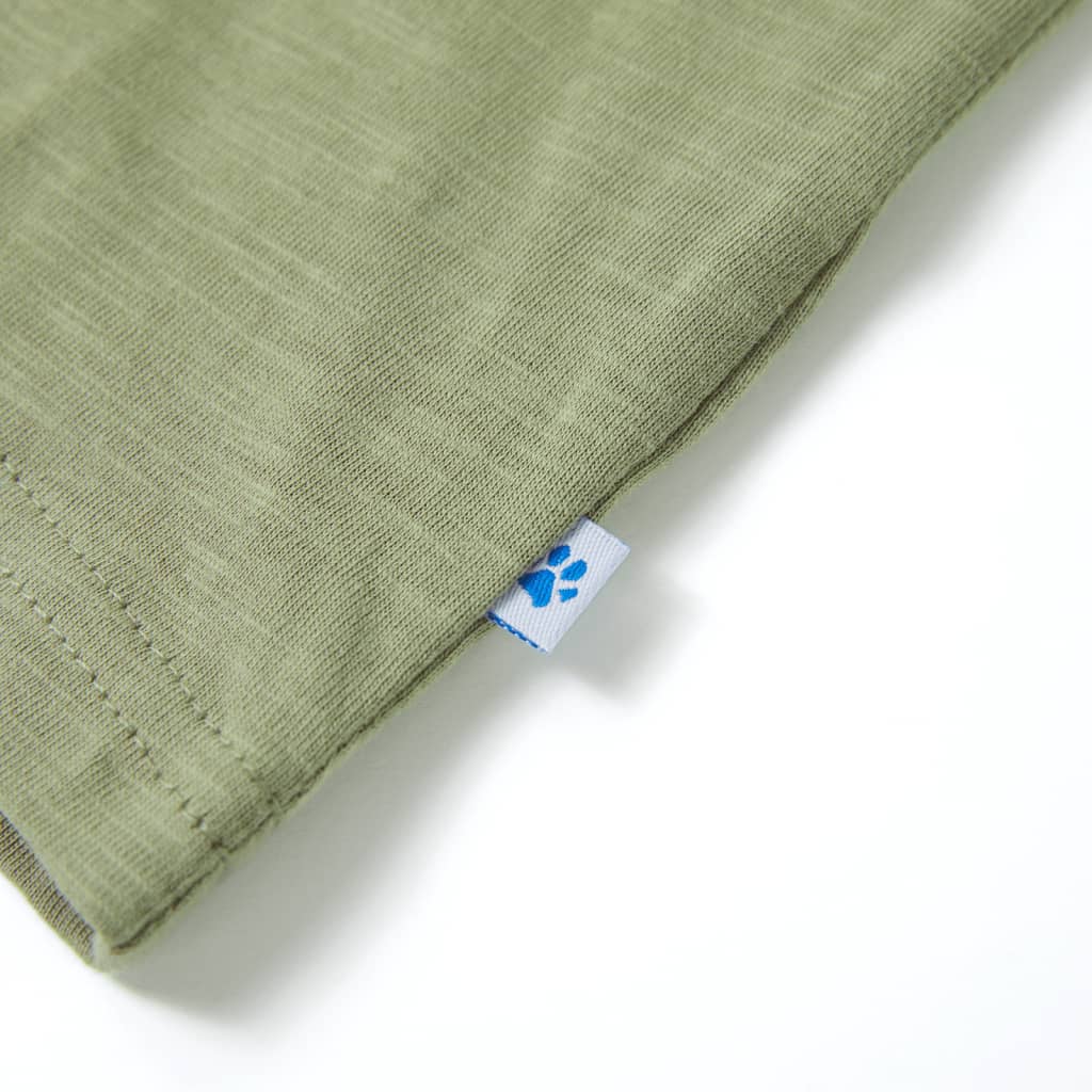 Esta t-shirt para criança possui mangas curtas, um decote canelado redondo e um modelo de corte reto. A t-shirt infantil apresenta um dinossauro e um fecho de correr. A t-shirt de manga curta para criança é feita de 100% algodão, proporcionando conforto e respirabilidade.