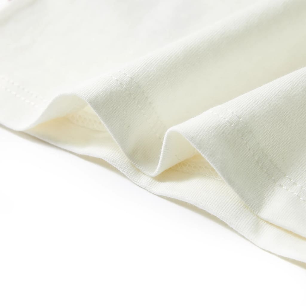 Esta t-shirt para criança possui mangas curtas, uma gola redonda e um corte a direito. Esta t-shirt de manga curta apresenta um design de mangas com folhos e é feita de 100% algodão proporcionando um toque macio e confortável.