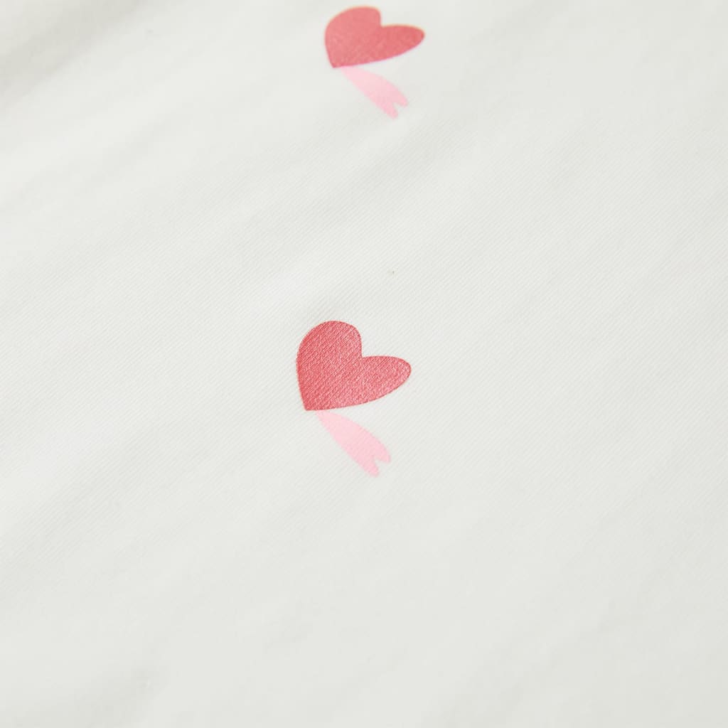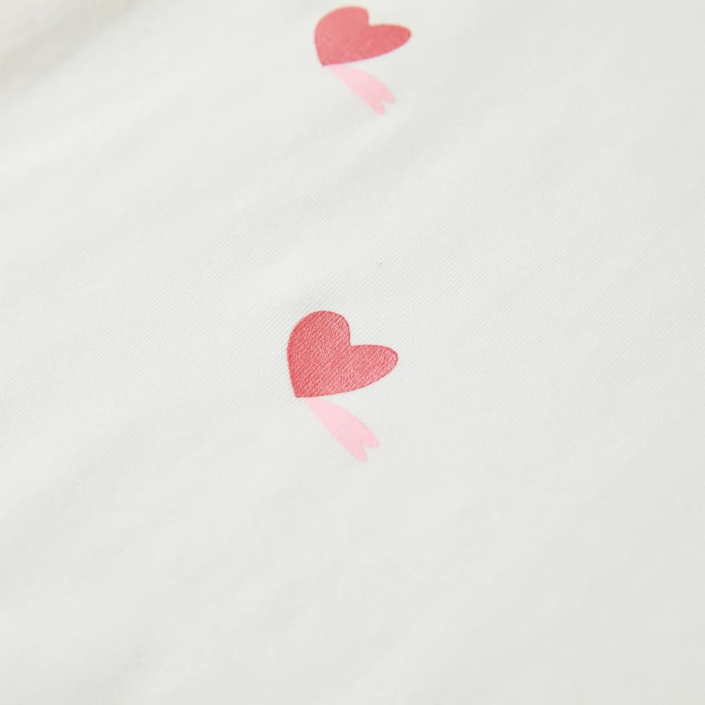 Esta t-shirt para criança possui mangas curtas, uma gola redonda e um modelo de corte a direito. A t-shirt de criança apresenta uma estampa de corações na parte da frente e é feita de algodão e elastano, proporcionando um toque macio e confortável.