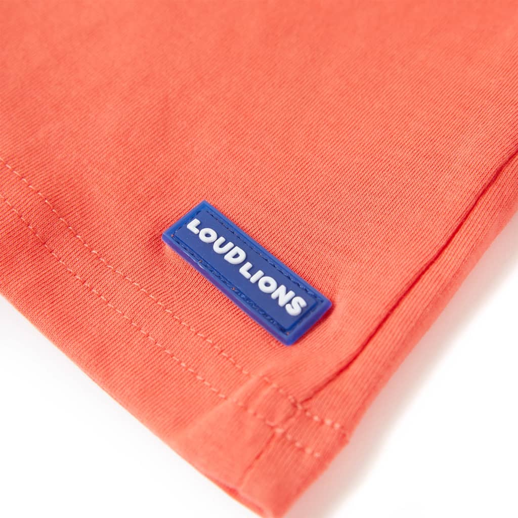 Esta t-shirt para criança possui mangas curtas, uma gola redonda e um modelo de corte reto. A t-shirt para criança apresenta a estampa de um dinossauro viajante. A t-shirt de manga curta para criança é feita de 100% algodão, proporcionando um toque macio e confortável.