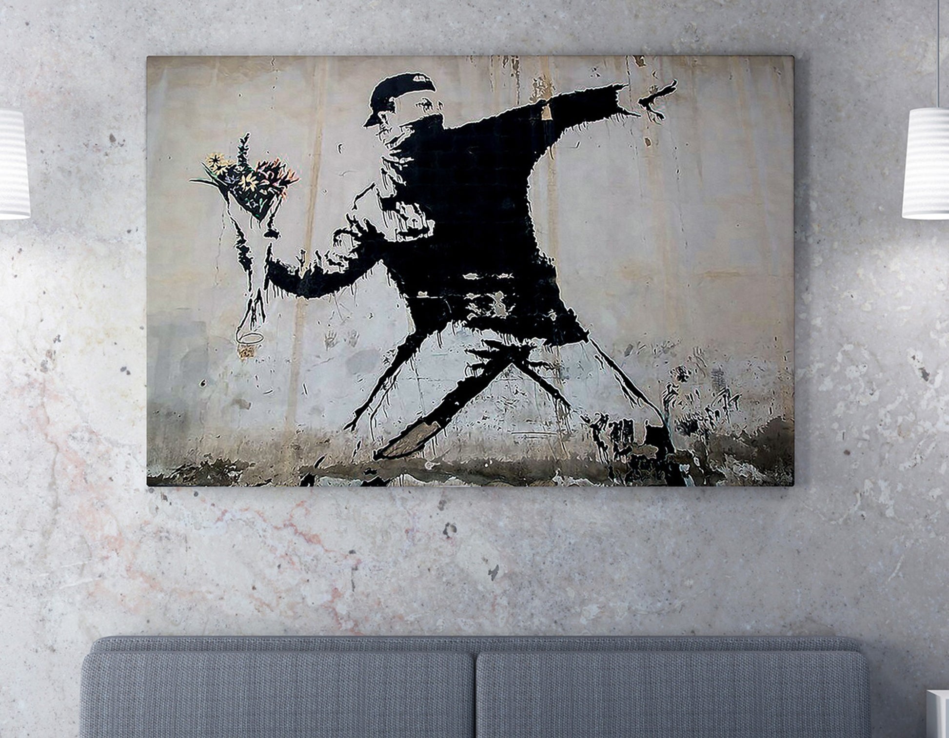 Eleve a decoração da sua casa com a fascinante pintura em tela rage, flower thrower do renomado artista banksy. Esta peça cativante adicionará sem esforço um toque de emoção e intriga a qualquer divisão, tornando-a a peça central perfeita para a sua sala de estar, quarto ou escritório.