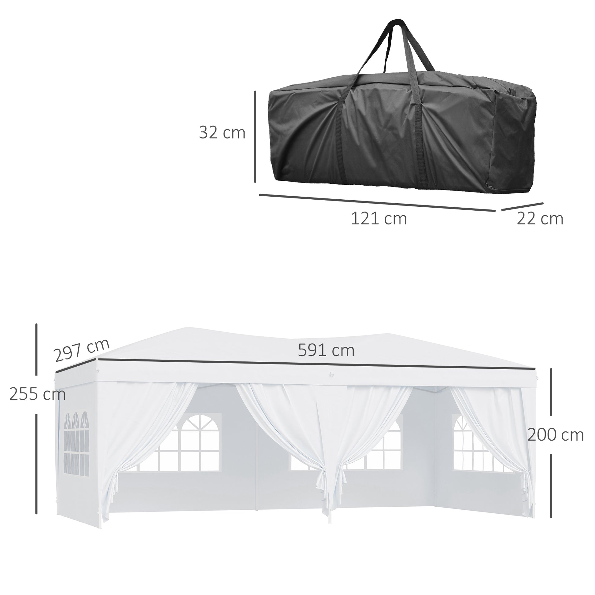 Esta tenda para festas é o complemento perfeito para qualquer evento ao ar livre. Com paredes laterais amovíveis, medidas de 591x297x255 cm e cor branca, oferece um amplo espaço interior para diversas atividades.