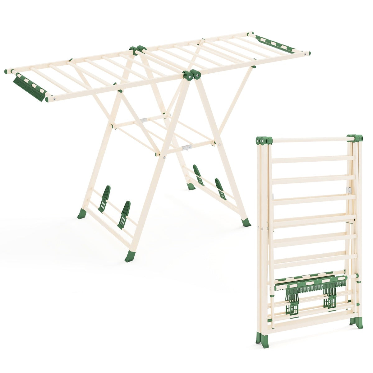 Tendedeiro de Roupa Dobrável com 18 Barras, Molas para Meias e Altura Ajustável para Varandas 163 x 56 x 99 - 158 cm Bege