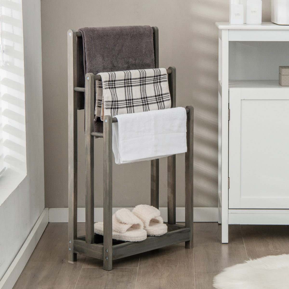 Toalheiro de Pé de Madeira – 45 x 22 x 86 cm – Cinzento – Madeira de Abeto