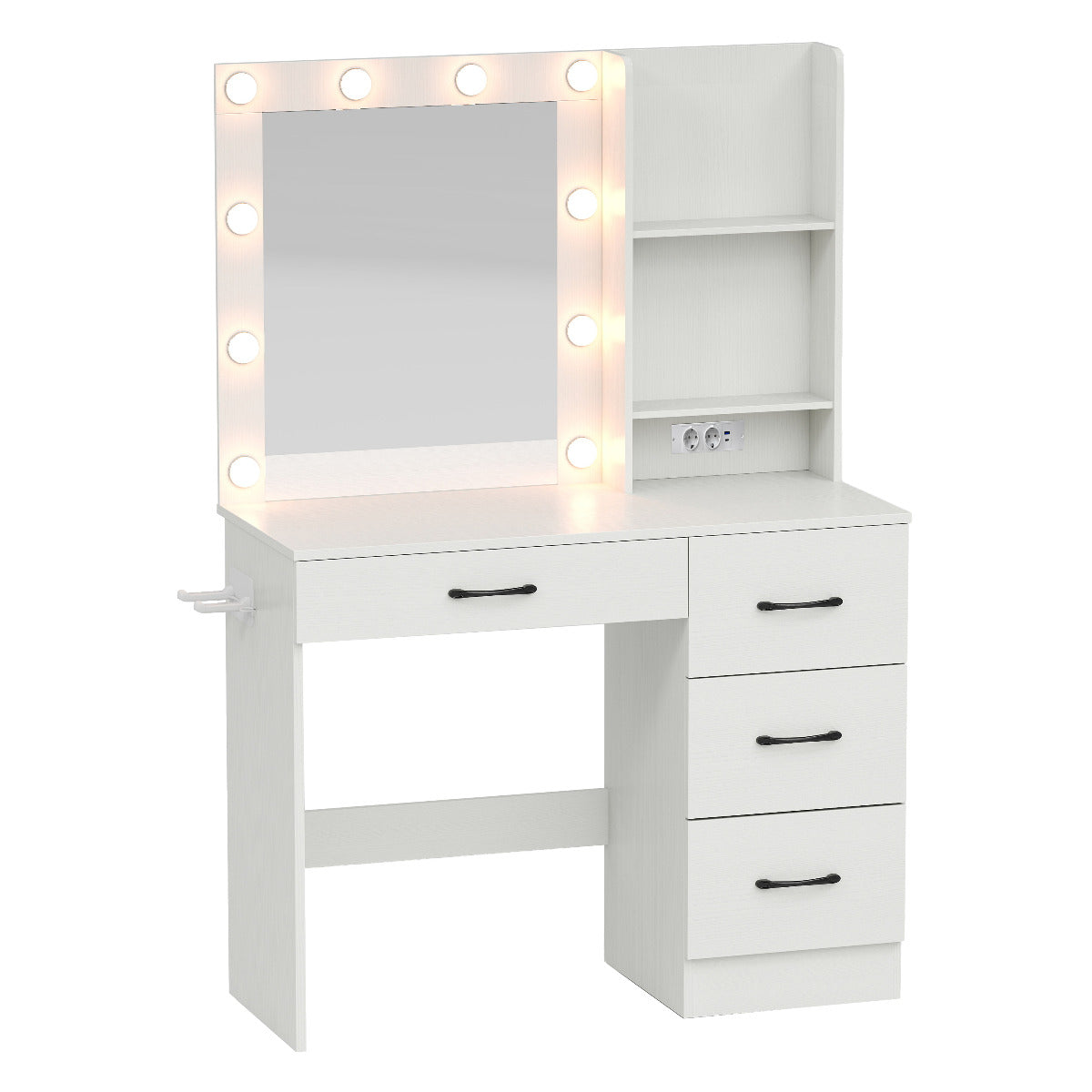 Tocador com Espelho e Luzes com Estação de Carregamento LED de 3 Cores Prateleira para Secador Gavetas e Prateleiras Branco