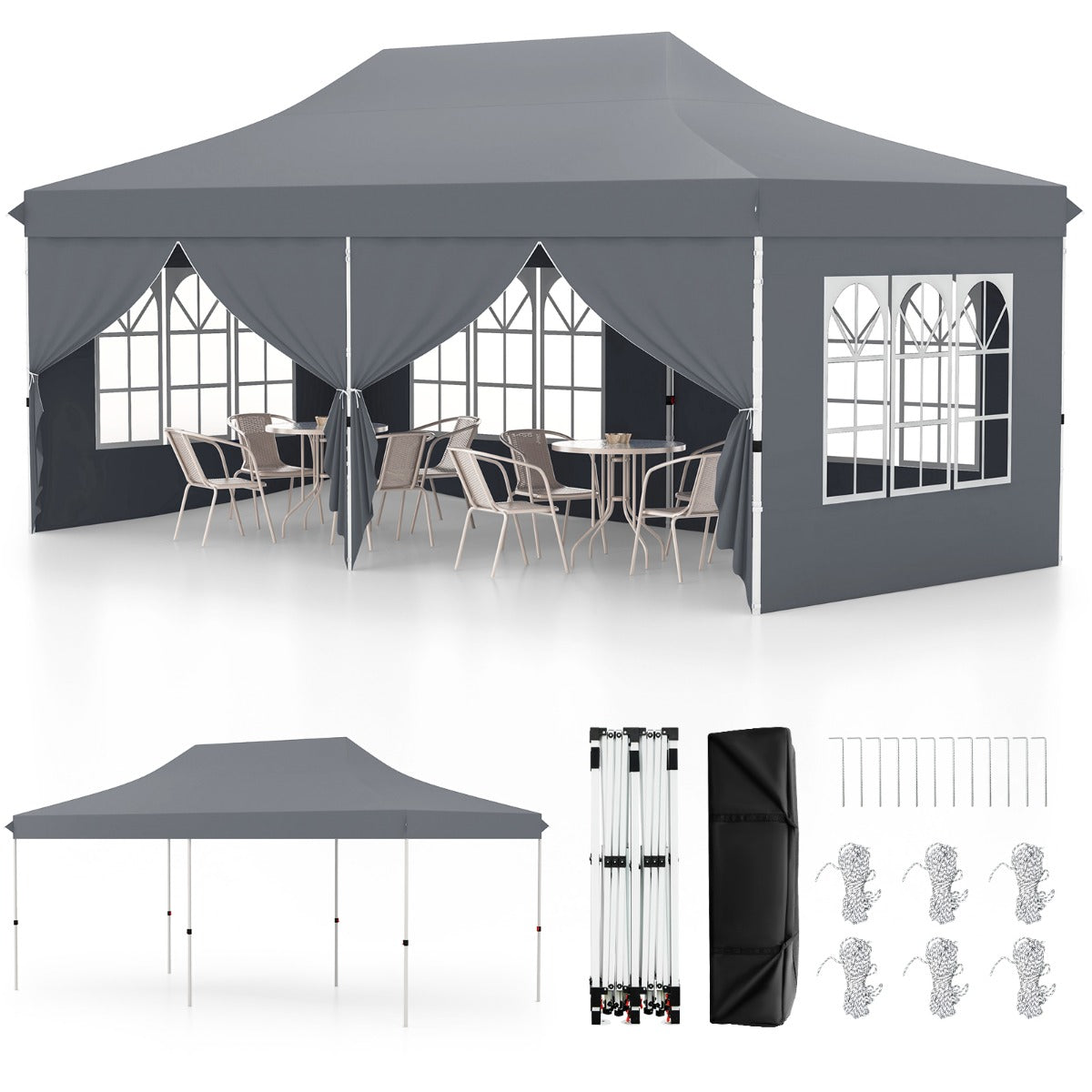 Procura um abrigo resistente e fiável para os seus eventos ao ar livre? Esta espaçosa tenda com toldo exterior, com dimensões de 300 x 600 x 296-316 cm (comprimento x largura x altura), oferece uma generosa área de sombra para desfrutar de piqueniques, churrascos, festas, casamentos, acampamentos e uso comercial. Equipada com 6 paredes laterais removíveis, incluindo 2 com entradas com fecho para um acesso rápido e privacidade adicional conforme necessário.