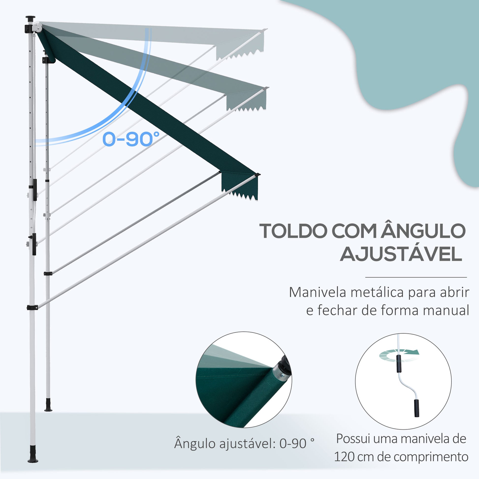 Toldo Manual Retrátil – 200x150 cm – Verde – Alumínio e poliéster