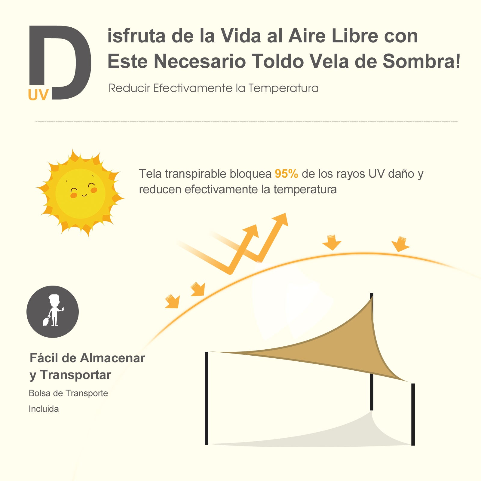 Aproveite ao máximo os espaços ao ar livre na primavera e verão com este toldo vela, proporcionando sombra e proteção contra os raios UV. Fácil de montar e desmontar, é ideal para várias aplicações externas, garantindo conforto e segurança.
