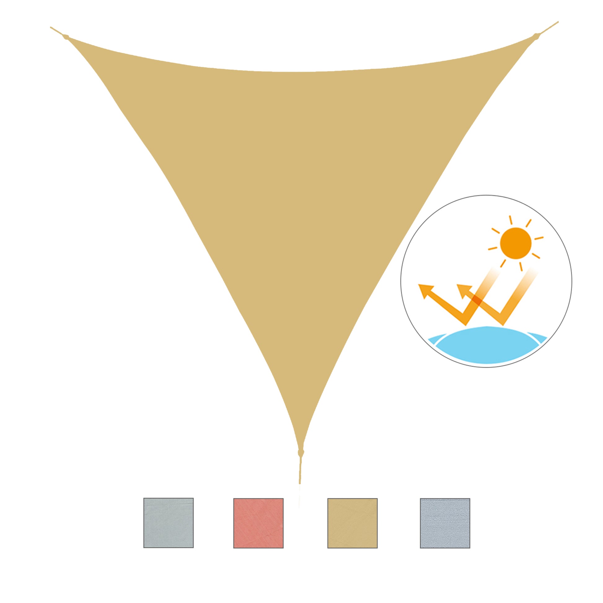 O Toldo Vela Triangular de 4x4x4m na cor areia é a solução ideal para se proteger do sol no seu terraço ou jardim. Feito com material HDPE de alta qualidade, este toldo é denso e resistente, proporcionando 95% de proteção contra os raios UV prejudiciais.