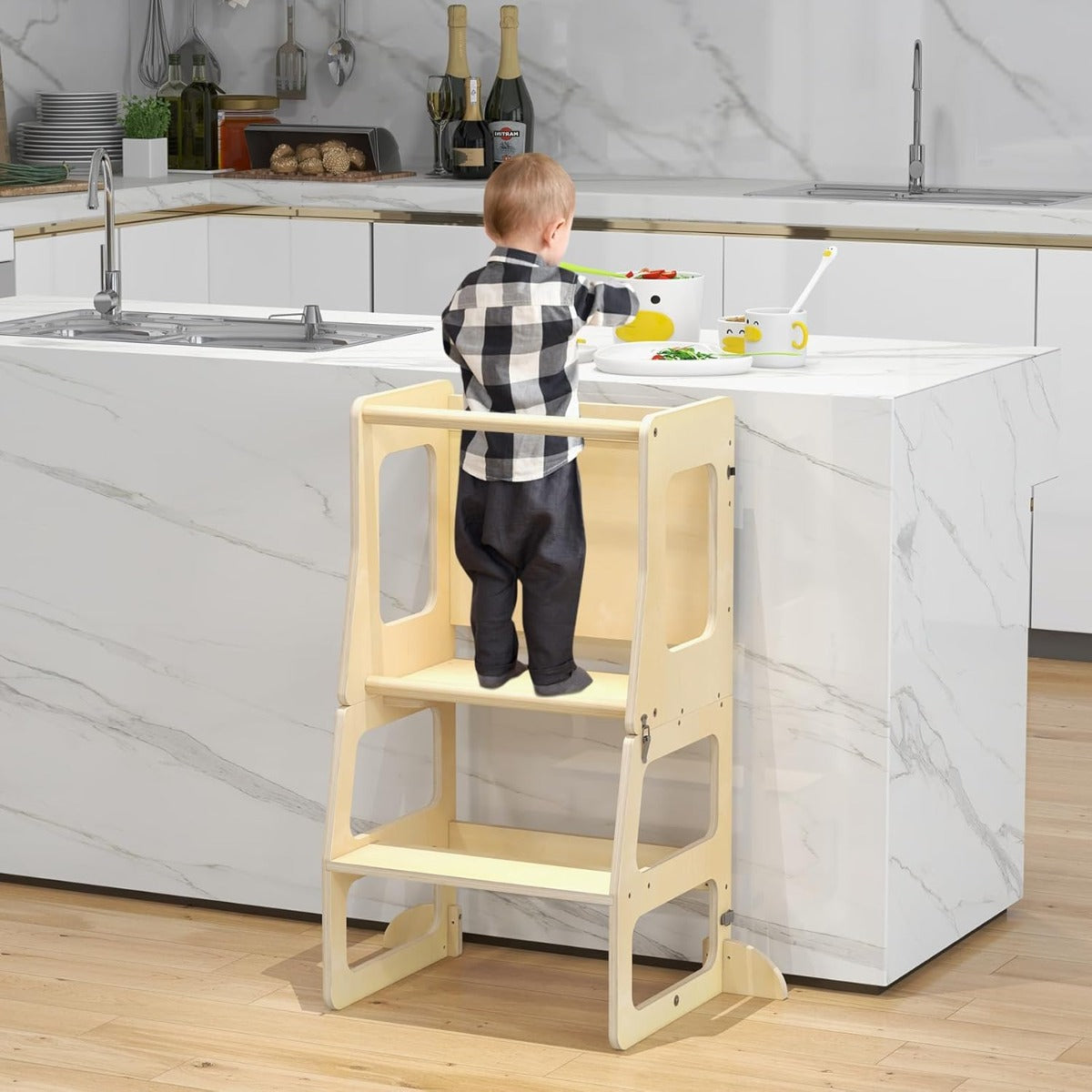 Atributo: Design versátil 3 em 1: Descubra a melhor adição à aventura de aprendizagem do seu filho com a nossa banqueta de ajuda na cozinha.