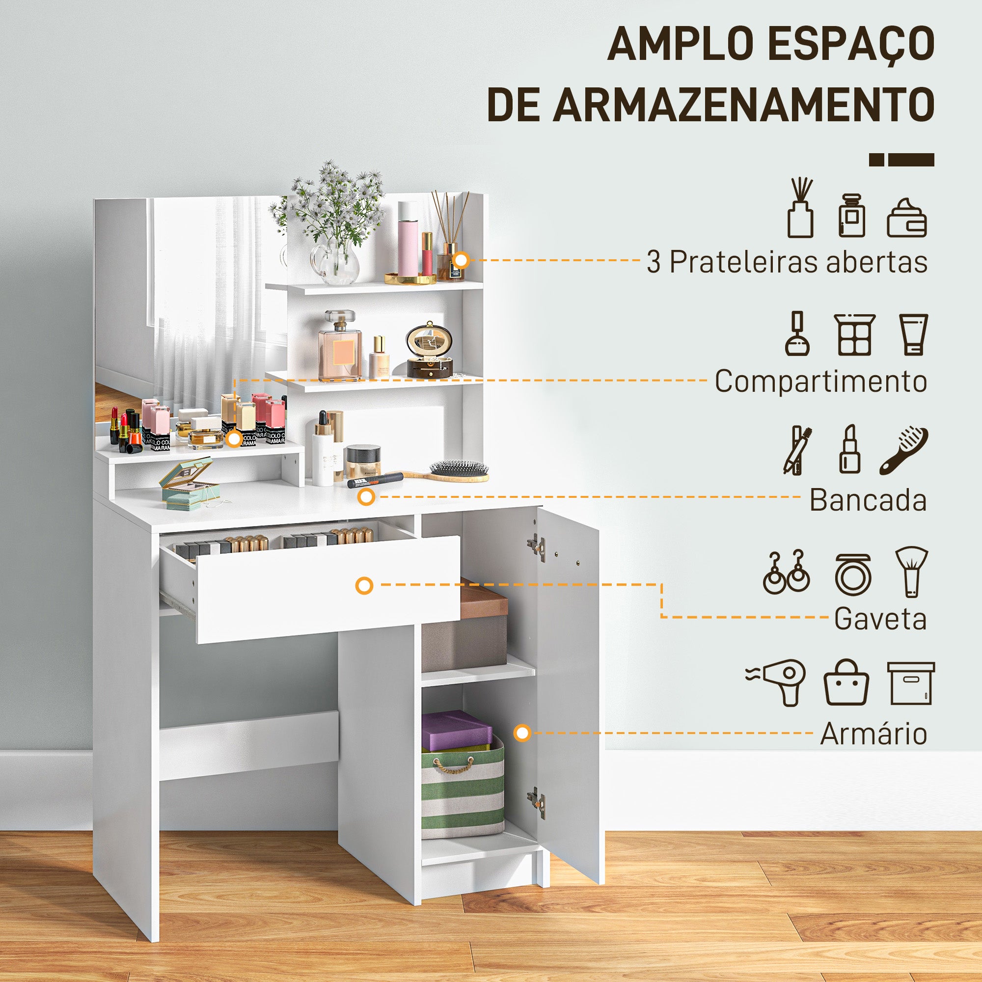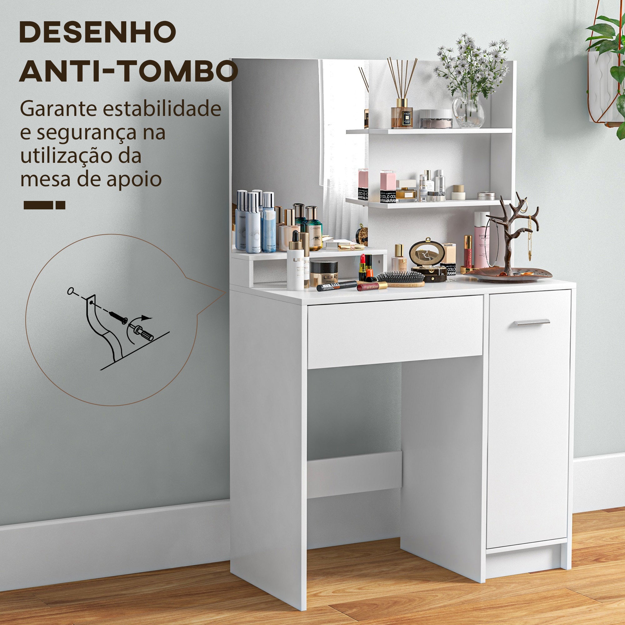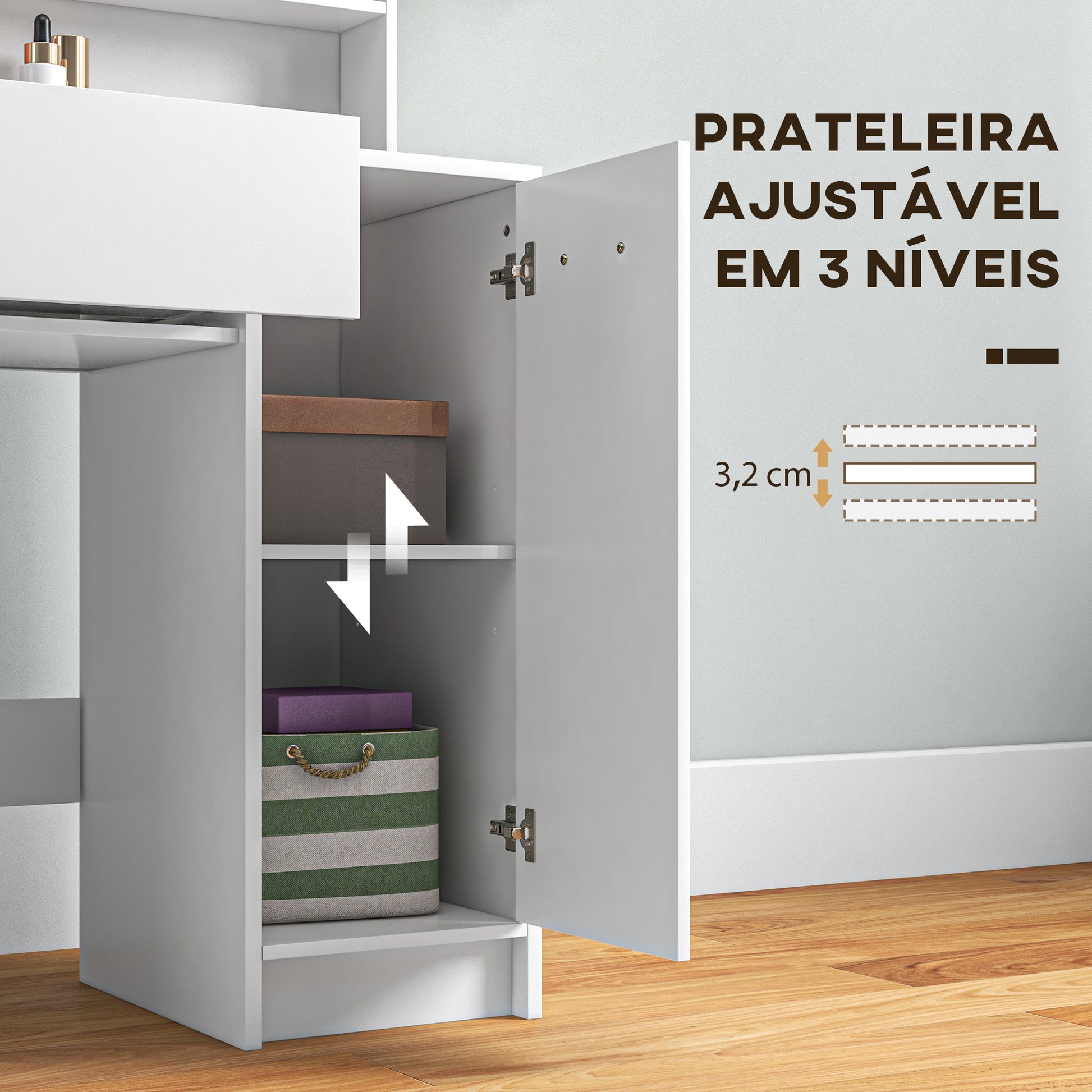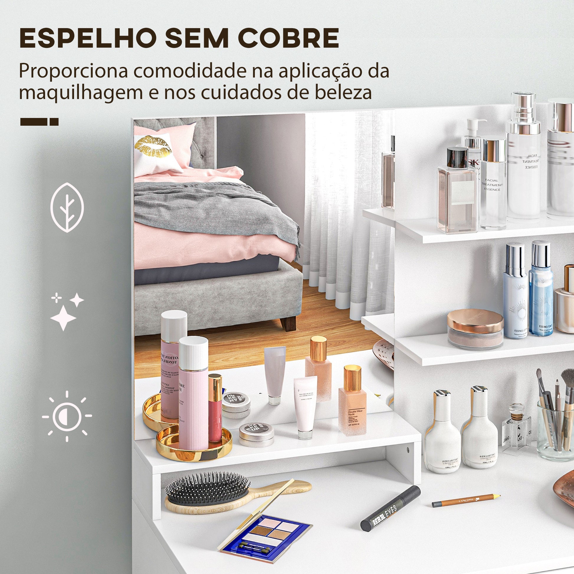 Este toucador de maquilhagem combina estilo e praticidade num único conjunto, proporcionando elegância e funcionalidade para a sua rotina de beleza diária.